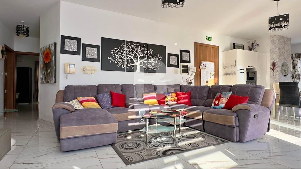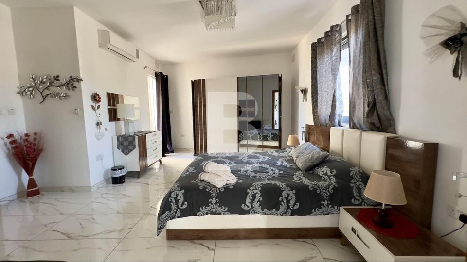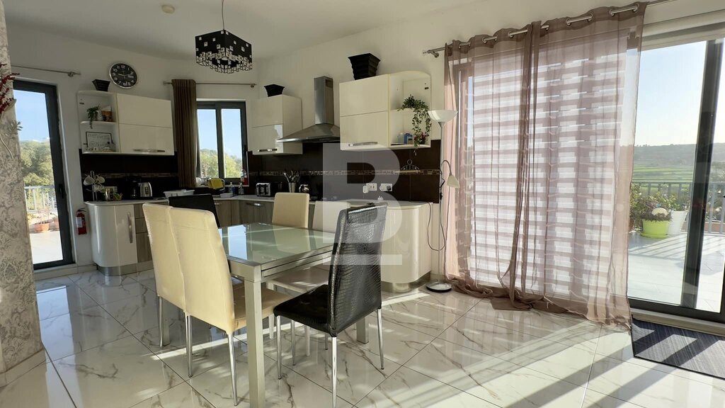 A four-bedroom fully furnished penthouse with side sea views and ODZ views. The layout comprises an entrance into a combined kitchen/living/dining area, four double bedrooms (two of which enjoy an en-suite), a main bathroom, a study area, back terraces, and a large corner 120sqm terrace with a Jacuzzi. An interconnecting staircase leads to a roof terrace that enjoys views of the surrounding village. This property also has permits to develop the airspace and convert it into a duplex. An optional garage is also available.