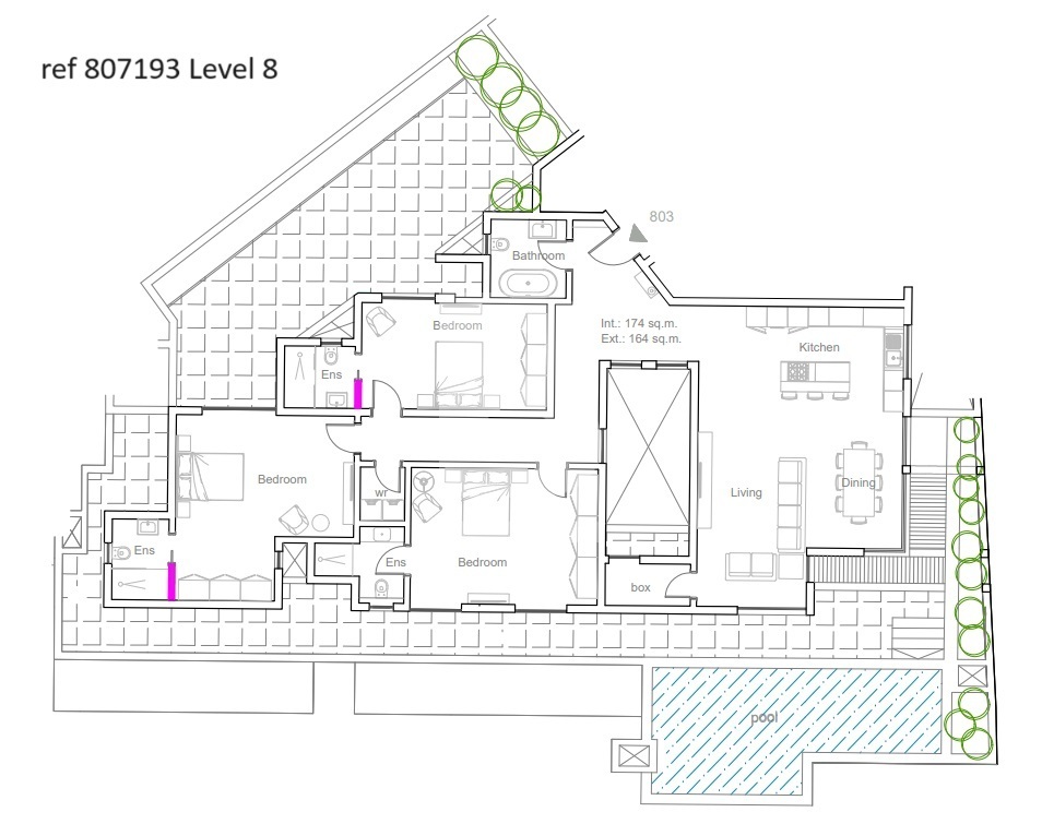 GZIRA - Spacious and well-appointed 8th floor Penthouse forming part of a new block. With 130 square meters of living space spread across three bedrooms, a kitchen, living, and dining area, it offers plenty of room for comfortable living. The en-suite bathroom adds convenience and luxury, while the additional bathroom serves guests and other occupants.
