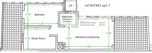 A spacious 4th floor apartment on 94sqm offering a combined kitchen/living/dining, main bedroom and a study. Spacious front and back terraces. Property is being sold semi finished with completion by end 2025.