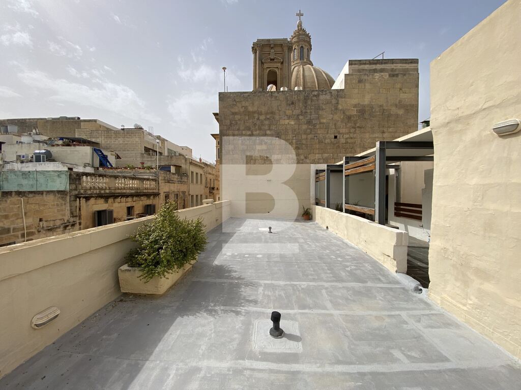 An corner 18th Century Palazzo built by Grand Master De Vilhena, still maintaining most of it's original features such as high ceilings some of which are arched and vaulted, timber beams, traditional Maltese balconies, patterned tiles, limestone walls, Medieval spiral staircase andlimestone flagstones. It is located on a quiet street just off the Carmelite Church in the heart of the Capital city, Valletta. At Ground floor level the layout comprises of an impressive entrance hall leading to a flat-let consisting of a fully fitted kitchen, sitting/living/dining, bedroom and bathroom and internal courtyard. However there are approved permits to turn this into office space consisting of two rooms, with one room having a mezzanine. The First Floor consists of 2 large bedrooms, a main bedroom with ensuite, a separate bathroom and a drawing room. On the Second floor one finds a large majestic dining room, an additional kitchen, a third bedroom with ensuite and another bathroom. There are 2 further rooms situated at Roof level, one of which has been converted into another bedroom. This property is Freehold and has permits in hand to further expand the internal area on the roof level. Must be seen to be truly appreciated.