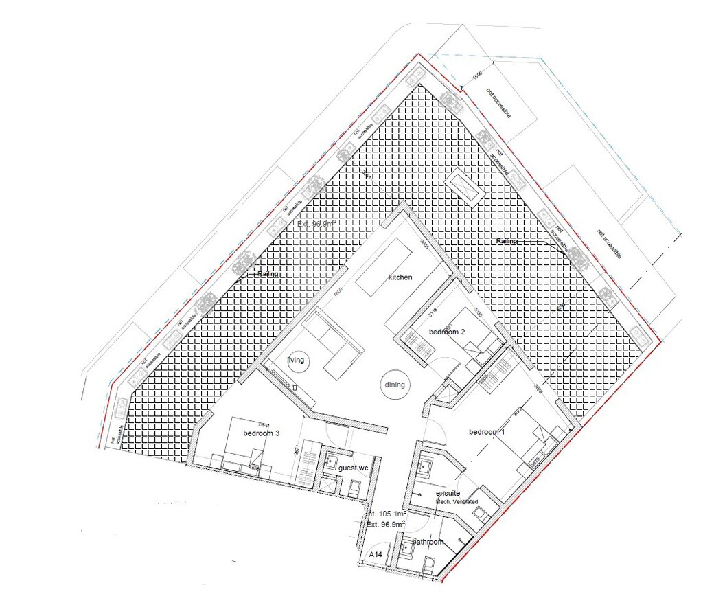 An opportunity to purchase at pre-construction prices within an exclusive new corner block that will be finished to high standards and include very good quality finishes in the common parts of the building. This 4th floor CORNER PENTHOUSE measures 202sqm consisting of an open plan kitchen/ living/ dining room leading out onto a 97sqm surrounding corner terrace, three double bedrooms with the master including an en-suite, main bathroom and a guest toilet. Property is being sold stylishly finished excluding bathrooms and internal doors and there are also optional garages available. This development is to be fully completed by End 2026.