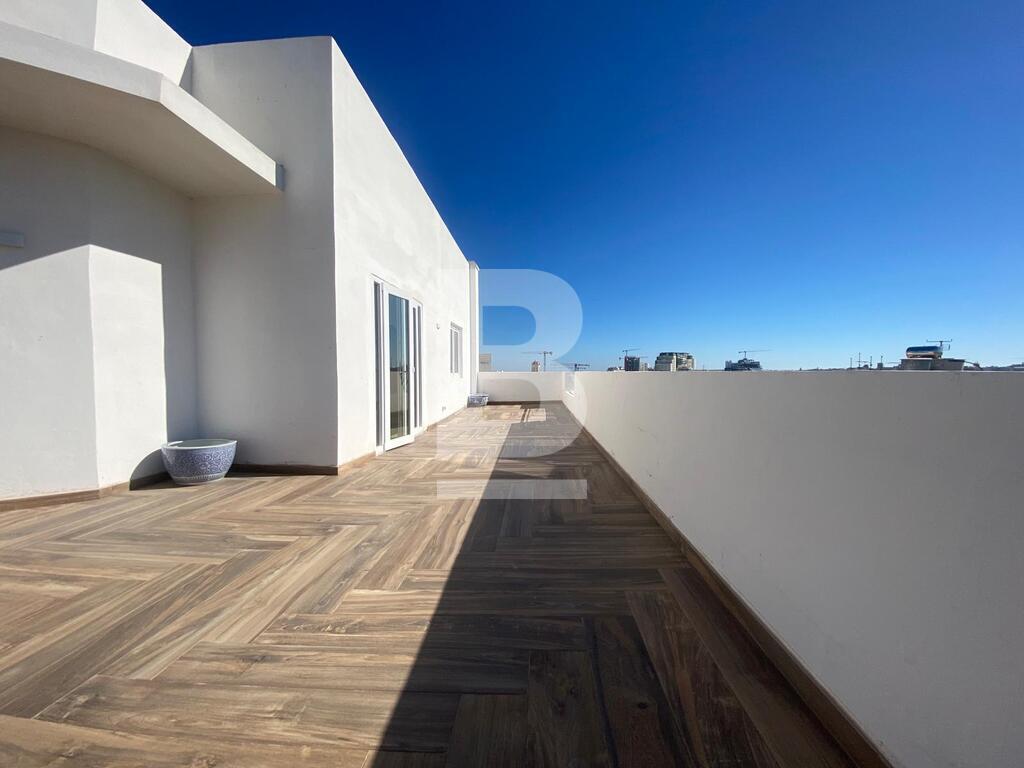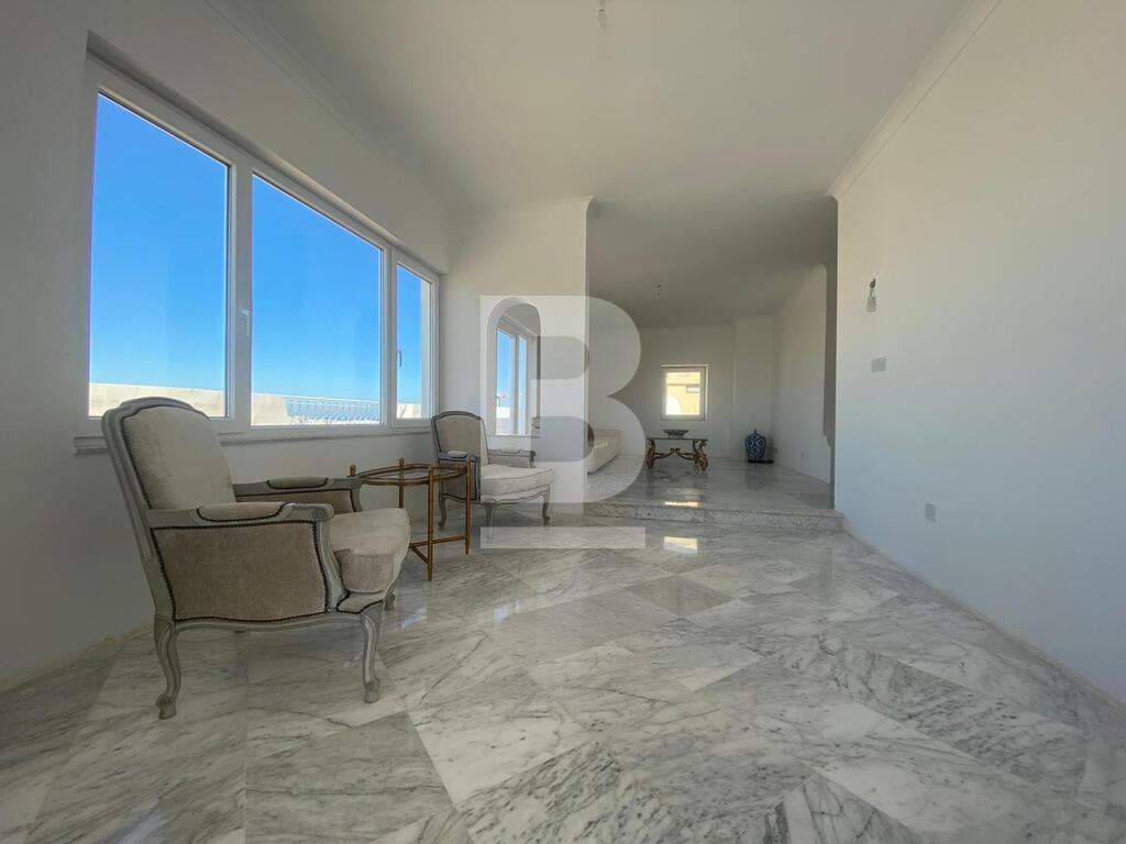 Finished with marble flooring, and flooded with abundant natural light, having a comfortable squarish layout, giving an easy and comfortable flow to all rooms. Upon entrance one is welcomed with a hall, an open plan kitchen, a study area as well as the living area all leading onto the 80 square meters large Terrace with unobstructed 180 degree views of Malta, including distant sea views and Valletta Views. Having 3 bedrooms, with the option to have a larger living space and keep two active bedrooms instead of 3, one of which has its en-suite bathroom. Another main bathroom and one space WC are also available and have been newly refurbished. A smaller storage room is also available, which could also be used as an optional laundry room if one wanted to. Included in the price, is the airspace for the additional unit / possible more units in the future, as well as possible swimming pool. A unique property that needs to be viewed to be appreciated.