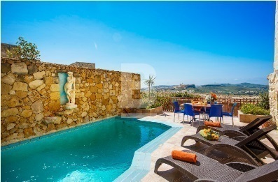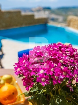 This farmhouse with original arches and thick stone walls in the living/dining area. One enters the house via a couple of stairs which lead to a hallway and a massive arched sitting/dining with windows overlooking the view. The spacious kitchen is next to the sitting/dining and connects to the pool terrace outside. The spare toilet is found on this level too. Outside, the private pool is equipped with a BBQ, sun loungers, and garden furniture. The views are truly stunning and dramatic. The staircase leads to the 3 delightful bedrooms upstairs - 1 master bedroom and 2 single bedrooms. All have their own private ensuite shower bathrooms and all enjoy views.