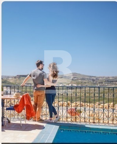 This farmhouse is entered through a charming courtyard into a beautiful room, now a tasteful living and dining space. A few steps lead to the kitchen, a spare toilet, and a delightful master double bedroom with an en-suite shower bathroom overlooking the private pool terrace. Outside, the terrace features a large private pool, garden furniture, sun loungers, and a BBQ, complemented by a lovely back garden. On the first floor, two spacious single bedrooms, each with an en-suite shower bathroom, have access to a rooftop terrace that offers views of the countryside and the pool terrace below.