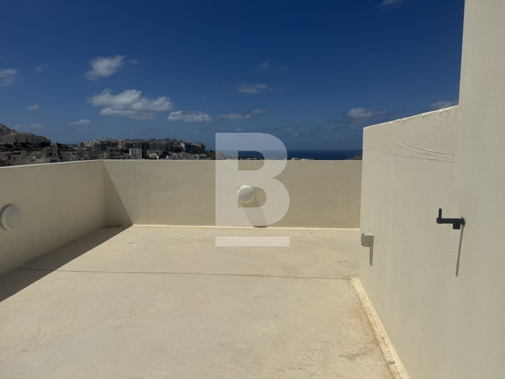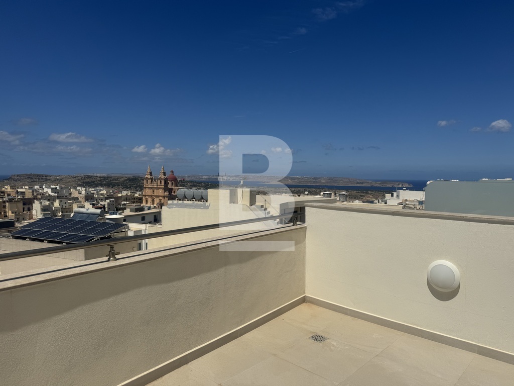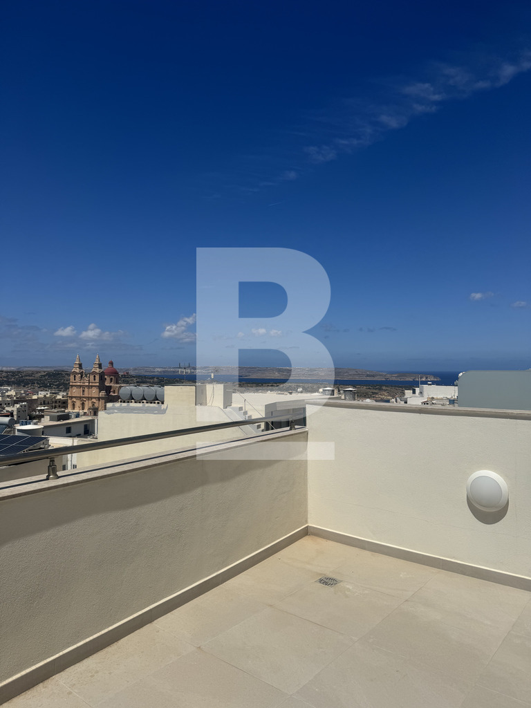 Highly finished and fully furnished 5th-floor penthouse situated in a quiet residential area of Mellieha and within walking distance to most amenities. The property comprises an open plan kitchen/ living/ dining area leading to a good-sized front terrace enjoying distant sea views, two double bedrooms ( main with en-suite shower room) main bathroom, and a box room. This property is fully airconditioned and includes all the modern necessities. Garage is available at an additional cost.