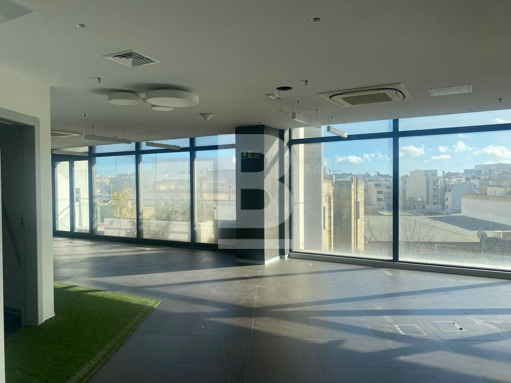 A UNIQUE OPPORTUNITY to lease half a floor of open plan OFFICE SPACE within this landmark development. This stunning, state of the art, standalone Tower is located in the heart of the bustling Gzira/Ta' Xbiex commercial zones and also enjoys an open landscaped plaza at road level, an indoor and outdoor cafe/restaurant and ample underground parking. This office measures 277.5 square metres internally and enjoys a 35 square metre front terrace. It is being offered fully finished to a very high standard, including high-end vinyl raised flooring, suspended ceilings, designer lighting and throughout, cladded walls, air-conditioning, server rooms, fully fitted kitchenettes and spacious terraces. This business centre will be serviced with a separate, spacious lobby that will also include a receptionist/concierge, 3 large passenger lifts, back-up generators powering the full floor and optional underlying parking spaces.