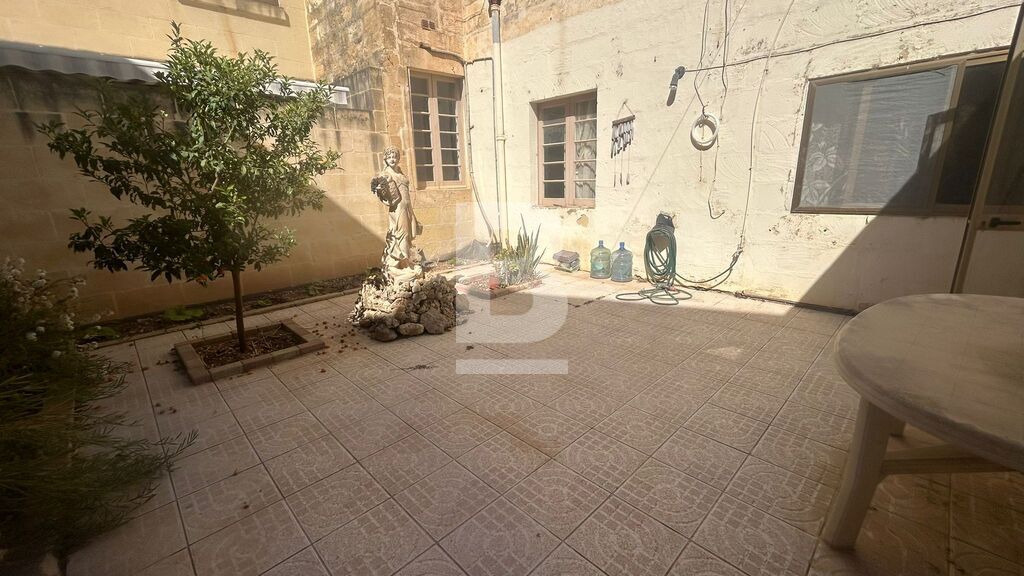 This beautifully maintained town house in need of renovation located in the heart of Gozo’s capital city having traditional Maltese charm is greeted by a welcoming sitting room, perfect for greeting guests. Down the hallway, you will find the stairway full of natural light that pours in through a skylight, creating a bright and inviting atmosphere where there is a grand opening that can easily be converted into a library or an additional living room and next to it there is a downstairs bedroom, offering convenient living arrangements. Further along, you will come across the dining room and the entrance to a spacious kitchen which leads you to the main bathroom and a guest toilet and also provides access to a courtyard and a large beautifully garden adorned with various trees, plants and also includes a well and a room that was used for keeping animals.