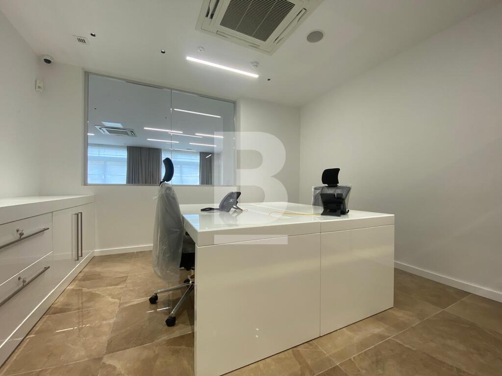 Step into luxury with this impeccably designed office space, occupying the 3rd floor of a modern building. Spanning 370 square meters internally, plus 10 square meters of balconies at both front and back of these offices, it exudes sophistication. The layout includes a welcoming reception area, a lounging area with a large aquarium, director's office with a personal assistant's space, a spacious boardroom with TV and large screen projection, assorted offices of varying sizes and male/female toilets. Glass partitioning ensures ample natural light, while amenities including air-conditioning, heating, dedicated server room, wifi, telephone pabx system, UPS for entire floor backed up by generator for entire block, surge and lighting protection, Sonos sound system throughout, CCTV in every room and Fire & intruder protection throughout cater to comfort and functionality. With no expense spared on finishes, this office offers a prestigious workspace ideal for fostering productivity and professionalism. Don't miss the opportunity to elevate your business in this exquisite environment, must be seen to be truly appreciated, call now to set up your viewing.
