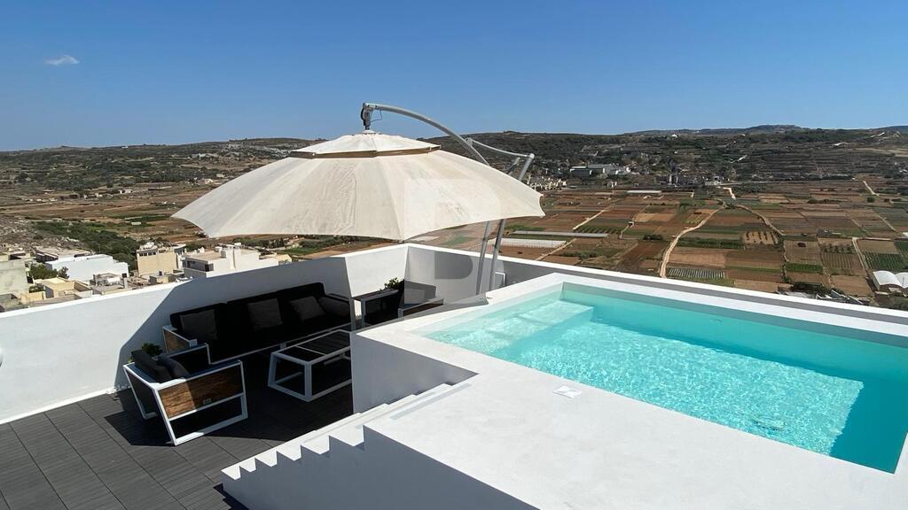 Hard to come by luxurious fully furnished and equipped Duplex Penthouse with Private pool located in a quite area of Manikata, the northern part of the Island enjoying unobstructed sea and country views. This property was originally designed as the landlord's private residence, hence a lot of detail has been put in it's design and functionality. Upon entrance one is welcomed by a large modern kitchen / living area leading onto the front terrace, a study are is available for those wanting to work from home, whilst the upper floor comprises of two bedrooms, and bathrooms facilities. One can enjoy and unwind at the beautiful private roof terrace, equipped with a private pool, modern outdoor furniture, BBQ area, serenity and tranquility. This property is ideal for those wanting to be surrounded by nature and get away from the busy urban areas. Parking facilities are also available within the same block. A truly Unique property which should definitely be viewed to be appreciated.