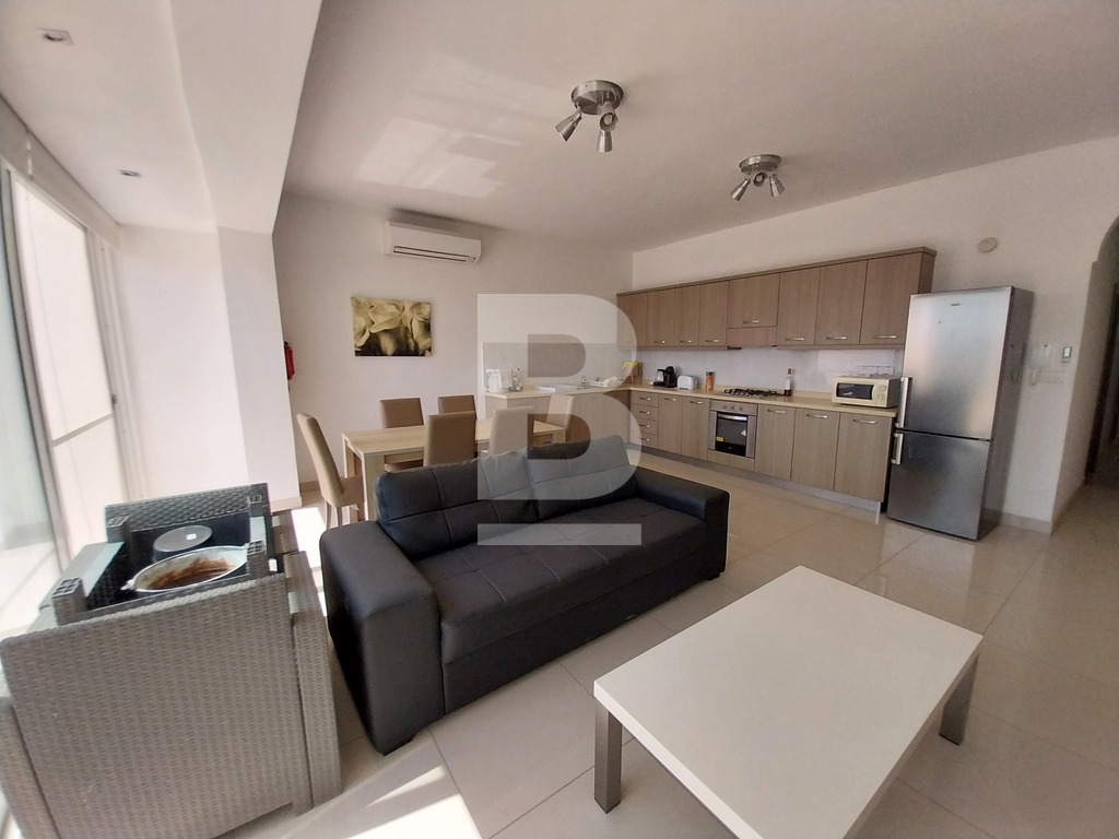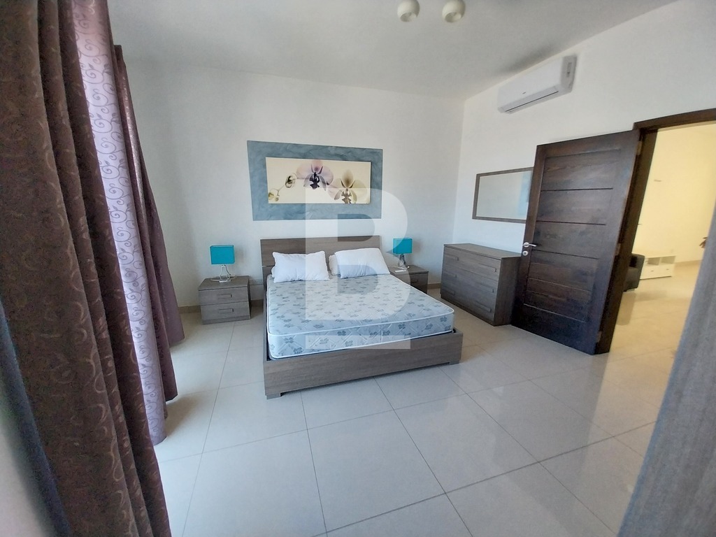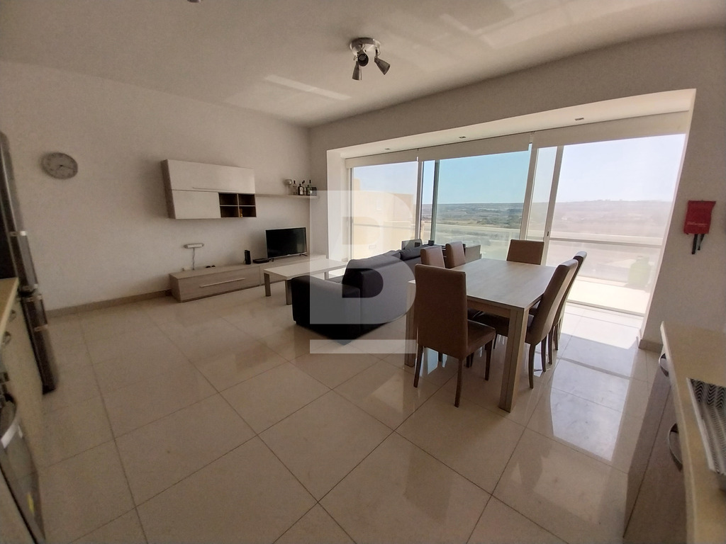 This stunning fully furnished three-bedroom penthouse in Xewkija offers breathtaking views of the countryside. Upon entry, a spacious hallway with a sofa leads to two double bedrooms and one bedroom with two single beds, each with its own ensuite shower room, while the main bedroom has an ensuite bathroom and a balcony. The large kitchen/dining/living area, bathed in light, provides direct access to the back terrace with beautiful views. The kitchen is equipped with modern appliances, including a dishwasher. The property is fully air-conditioned and it also includes a large private roof with a jacuzzi sized for 6 poeple (at an extra cost of €100 monthly), shower and outdoor furniture.