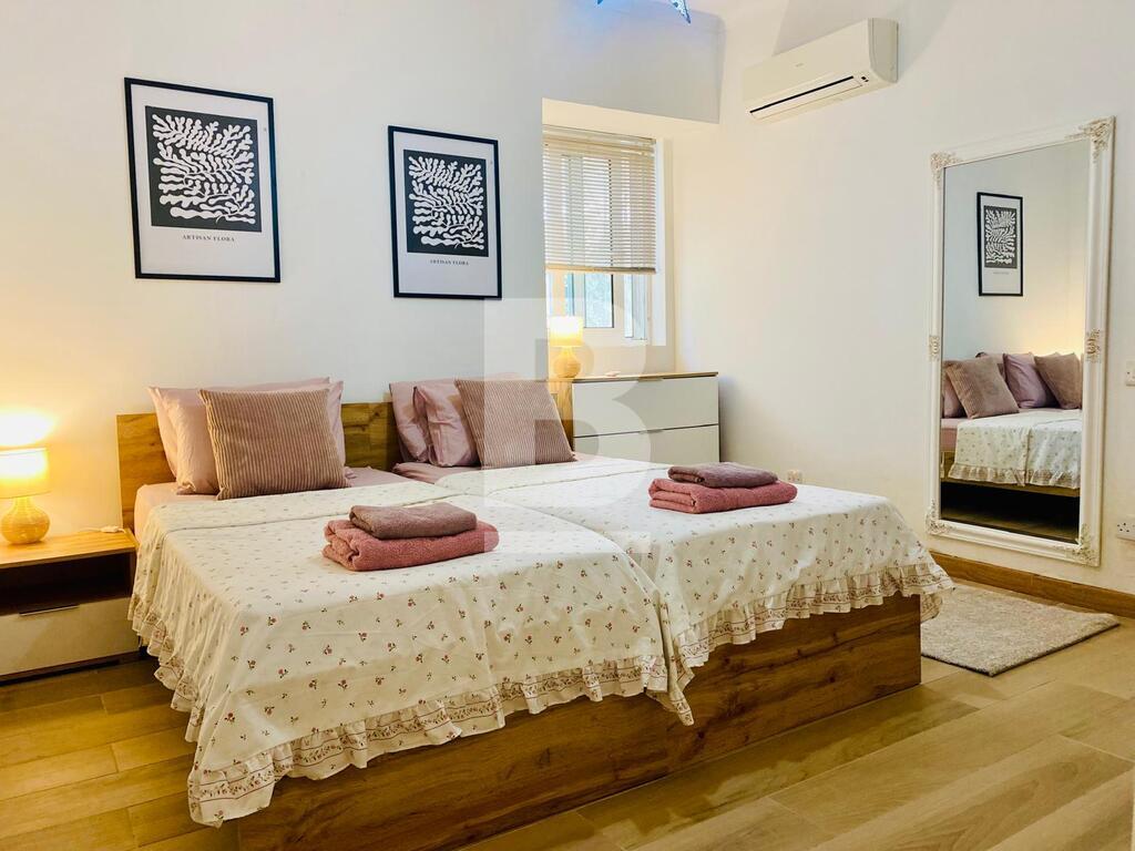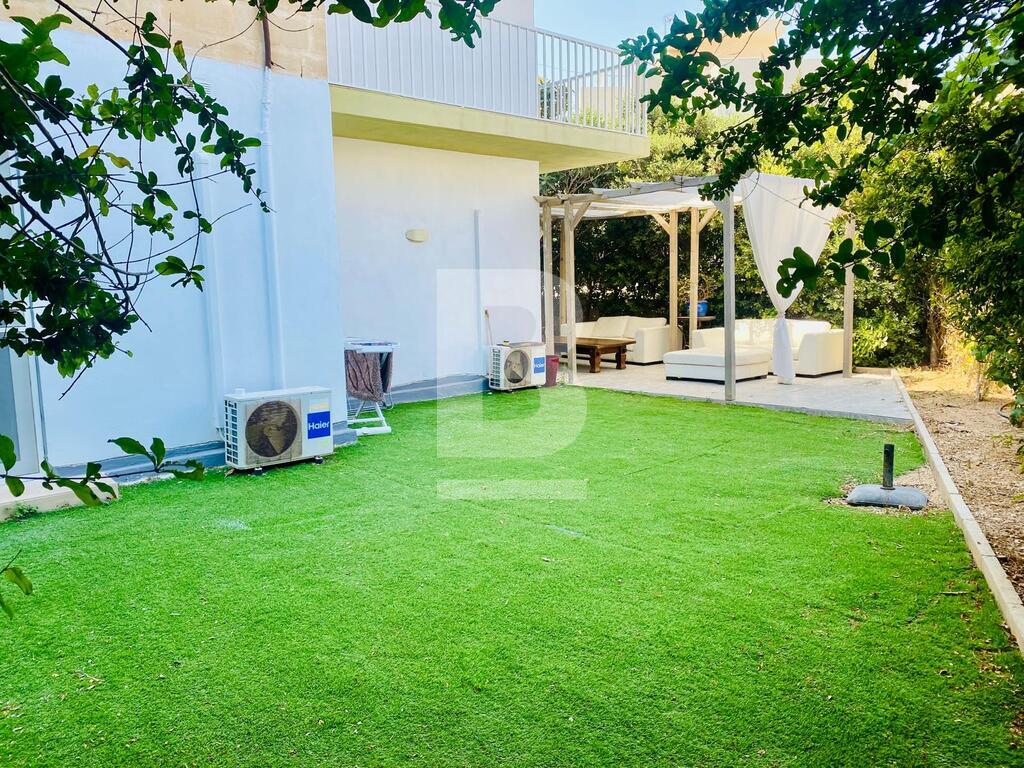 Swieqi, Upper Gardens area, is this lovely ground floor apartment close to all amenities having a spacious 80sqm surrounding garden which adds space and serenity to this wonderful home. Property offers an open plan kitchen/living/dining room, kitchen is fully equipped with all appliances and a sofa bed forms part of the living area. 2 double bedrooms, 1 ensuite bathroom and a second shower room are available. Property is centrally located walking distance to the central hub and offers the facilities of a communal pool ideal for families!