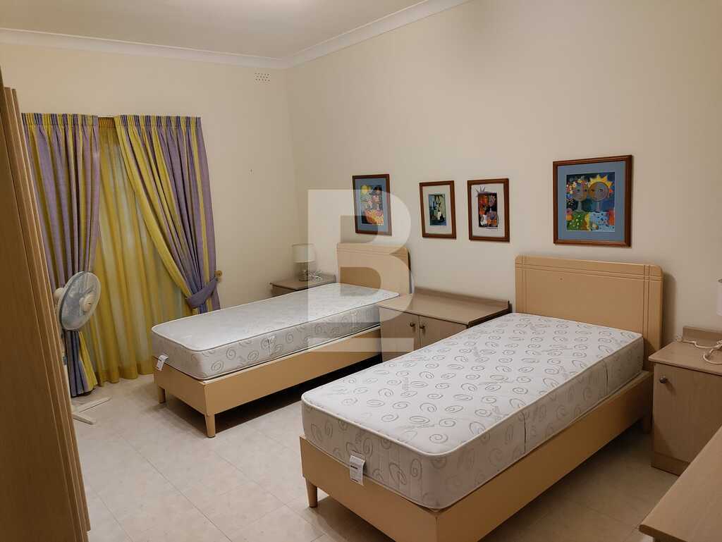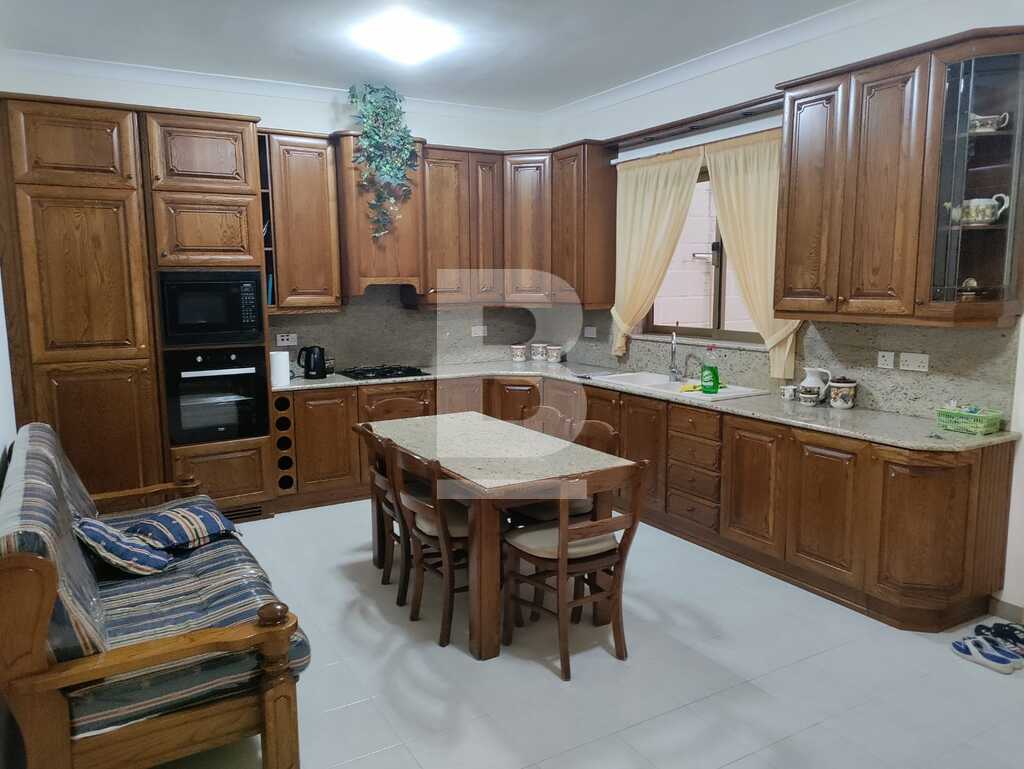MQABBA - 4-bedroom house offers spacious living across two floors, plus a rooftop area with a convenient washing room. The home features a fully equipped, large kitchen and a cozy living room. It includes two bathrooms, one with a shower and one with a bathtub. The property boasts a back yard for outdoor enjoyment and a small central inner yard that adds natural light. Additionally, there is a 1-car garage for secure parking.