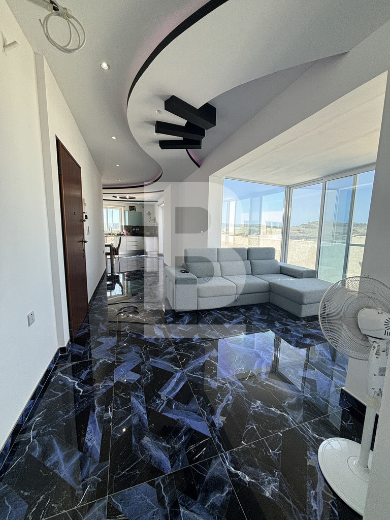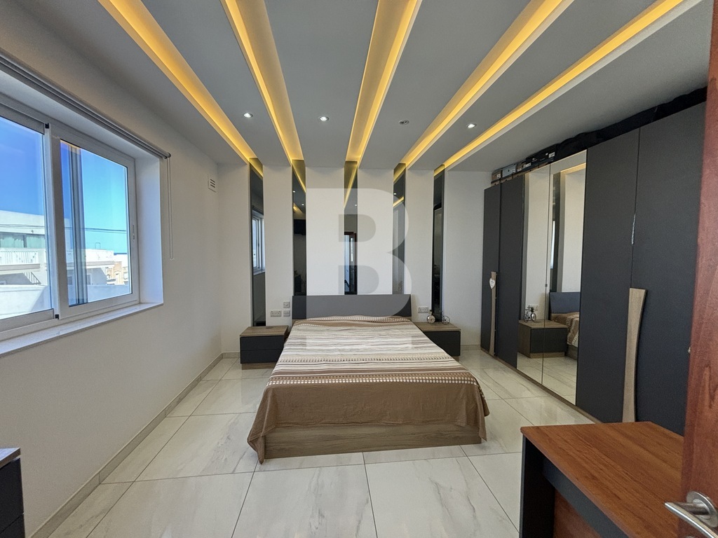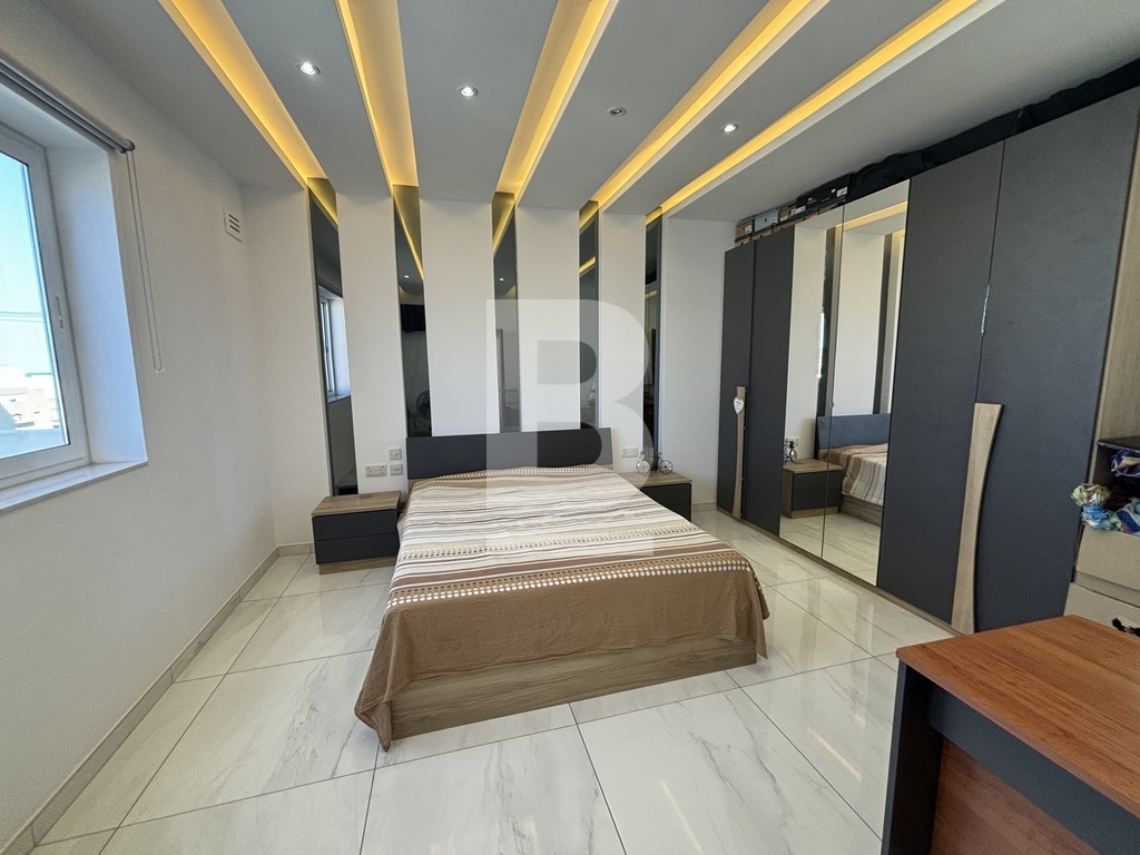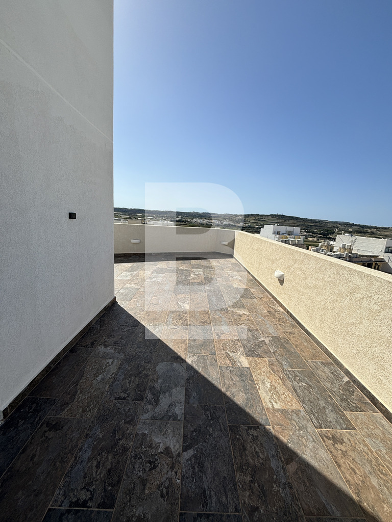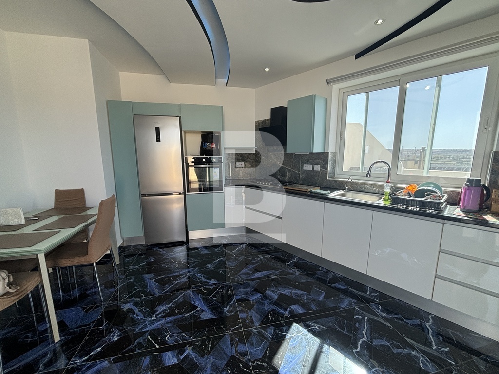 QAWRA - A corner highly finished one-bedroom penthouse being sold with its airspace. The property is being sold highly finished and offers a kitchen/dining area overlooking a 100m² corner terrace with far-reaching views. Further down the wide hallway filled with natural lights one finds a living area, the main bathroom, and a double bedroom. The property is being sold furnished and is ready to move into. The front terrace has also been reinforced to build a pool. Served with a lift.
