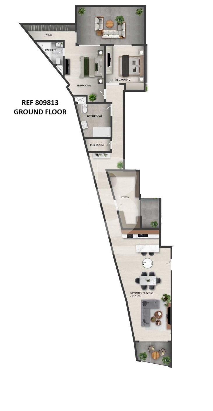 An opportunity to buy a high-end semi-finished MAISONETTE within a beautiful residential block overlooking a green area. Spacious layout comprises o kitchen/ living/ dining area, leading out onto a front garden, 2 large double bedrooms both having access to a 33 sqm terrace. master bedroom with en-suite and a walk-in closet, study with access to internal yard, large bathroom, and laundry room. Optional underlying garages. Premium Finishings include PVC apertures, CCTV, Fire retardant door, water irrigation, Allocated garbage areas and more. Sold excluding bathrooms & doors. Freehold. Great payment terms. Completion date set for April 2025.