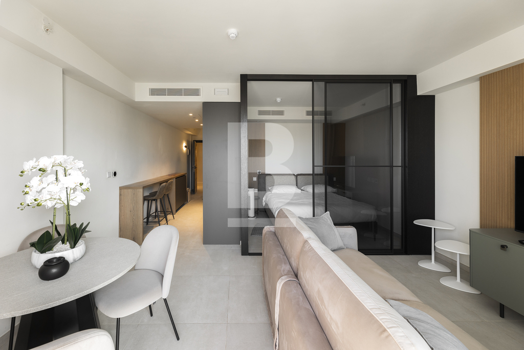 Mercury Suites is part of a prestigious new lifestyle development, masterfully designed by the world-renowned architects at Zaha Hadid. Seamlessly integrated with the flowing lines of the iconic Mercury Towers, this property offers a modern and elegant living experience. Located on the 7th floor, this 58 sqm suite is finished to exceptionally high standards and features an open-plan kitchen, living, and dining area that leads to a well-sized balcony. The suite includes one bedroom a stylish main bathroom and a storage room with a single spare bed. Residents enjoy access to top-tier amenities, including a gym, pools, a spa, and the luxurious 5-star ME Hotel. The development also boasts a vibrant shopping center, upscale restaurants, cafés, and various leisure options. FREEHOLD