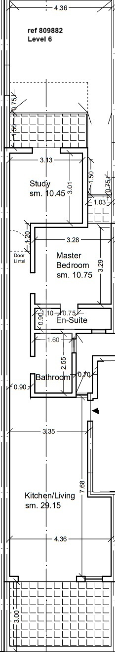 Forming part of this brand new residential block is a sixth floor Penthouse of circa 93.05sqm. This property consists of an entrance to a kitchen/living/dining room, a double bedroom with en-suite, a study, bathroom and a front and two back terraces. The property will be sold finished, including bathrooms and doors and is set to be completed by April 2025. Optional 2 car garages available starting at €55,000.