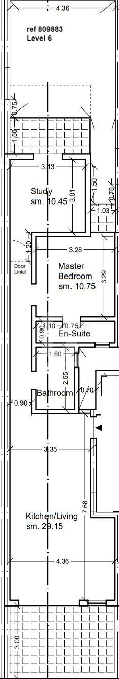 Forming part of this brand new residential block is a sixth floor Penthouse of circa 98.35sqm. This property consists of an entrance to a kitchen/living/dining room, a double bedroom with en-suite, a study, bathroom and a front and two back terraces. The property will be sold finished, including bathrooms and doors and is set to be completed by April 2025. Optional 2 car garages available starting at €55,000.