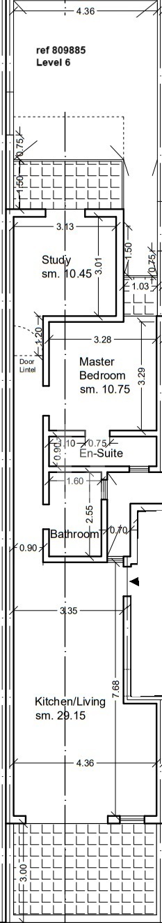 Forming part of this brand new residential block is a sixth floor Penthouse of circa 98.35sqm. This property consists of an entrance to a kitchen/living/dining room, a double bedroom with en-suite, a study, bathroom and a front and two back terraces. The property will be sold finished, including bathrooms and doors and is set to be completed by April 2025. Optional 2 car garages available starting at €55,000.