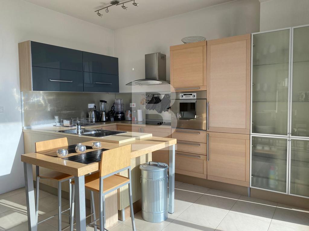 Spacious and modern 2-bedroom, 2-bathroom flat located in the heart of Sliema. Fully furnished and equipped with A/C, a dishwasher, and 2 balconies. Situated on the 5th floor, this flat features a large open-plan kitchen, dining, and living area, perfect for comfortable living.