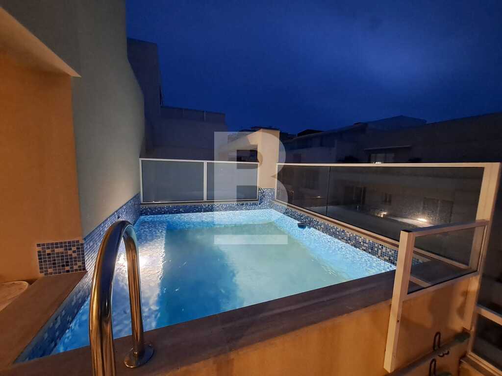 A well-designed apartment block in a prime residential location, within walking distance to St.Georges Bay and Spinola Bay this fully furnished PENTHOUSE comprises an entrance to an open plan kitchen/living/dining, leading to a large front terrace and SWIMMING POOL (3.75 X 3.24 mtrs), 2 double bedrooms leading onto a back balcony, 2 shower rooms (1 en-suite). Includes air-conditioning and served with a lift. The apartments in this block have been built to exacting standards, with high specifications including energy-saving materials and a secure environment, making this development truly special.