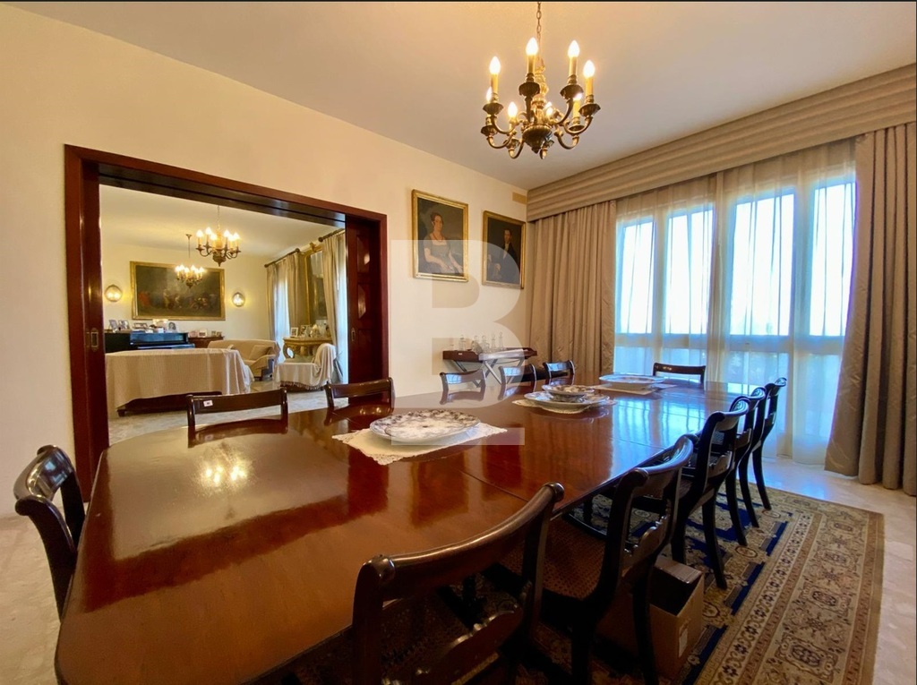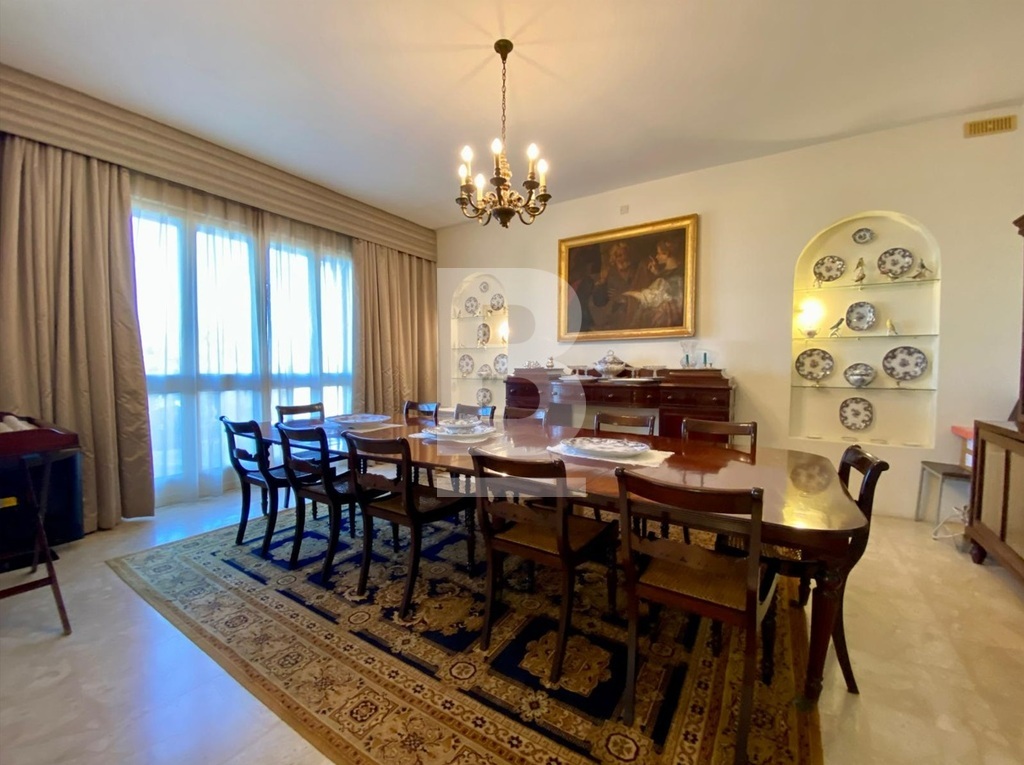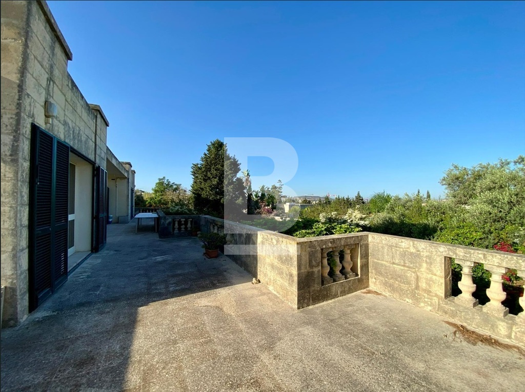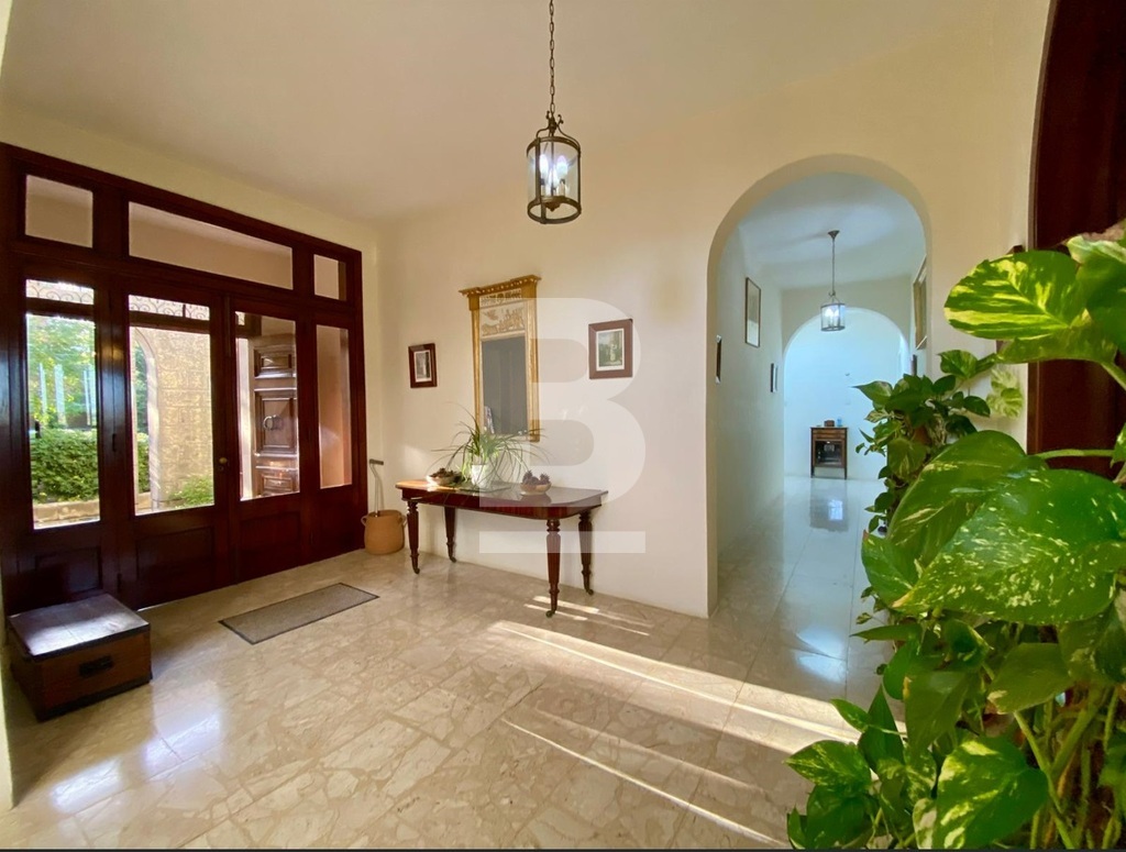 As you approach, a mature front garden welcomes you, setting the tone for the tranquility and warmth that awaits inside. The bright entrance hall leads to a spacious living room featuring a cosy wood burning fireplace, complemented by a separate kitchen/breakfast, a large sitting room with an adjoining dining room. These areas flow seamlessly onto a large terrace, ideal for outdoor family dining or relaxation, with spanning view of the surrounding green villa area, distant seaviews and extending all the way to the island of Gozo.