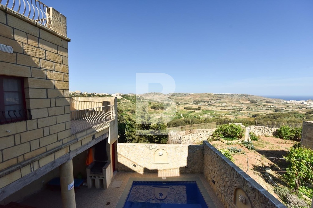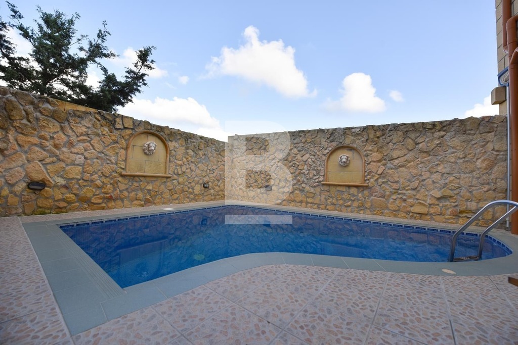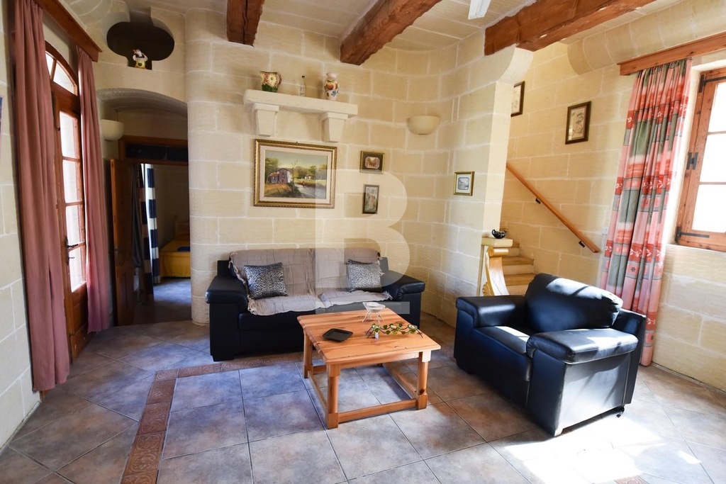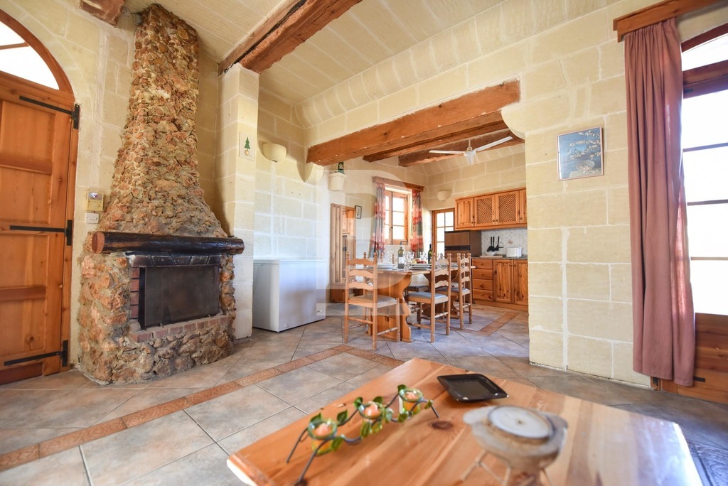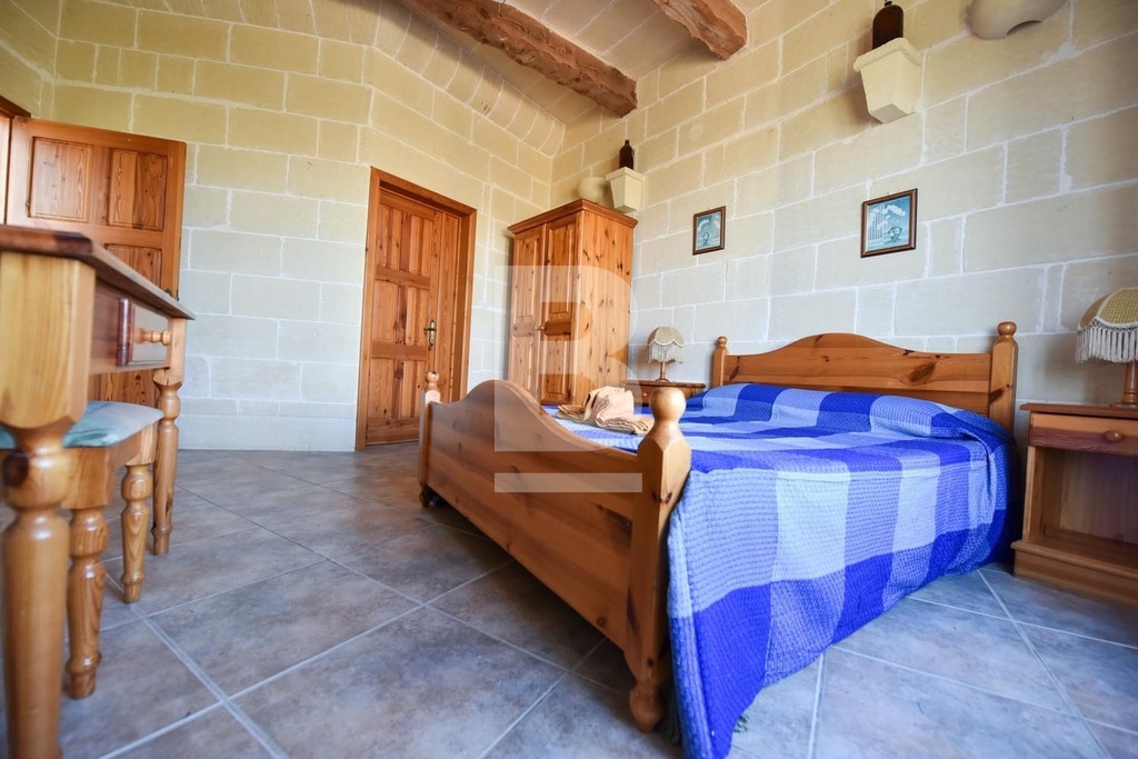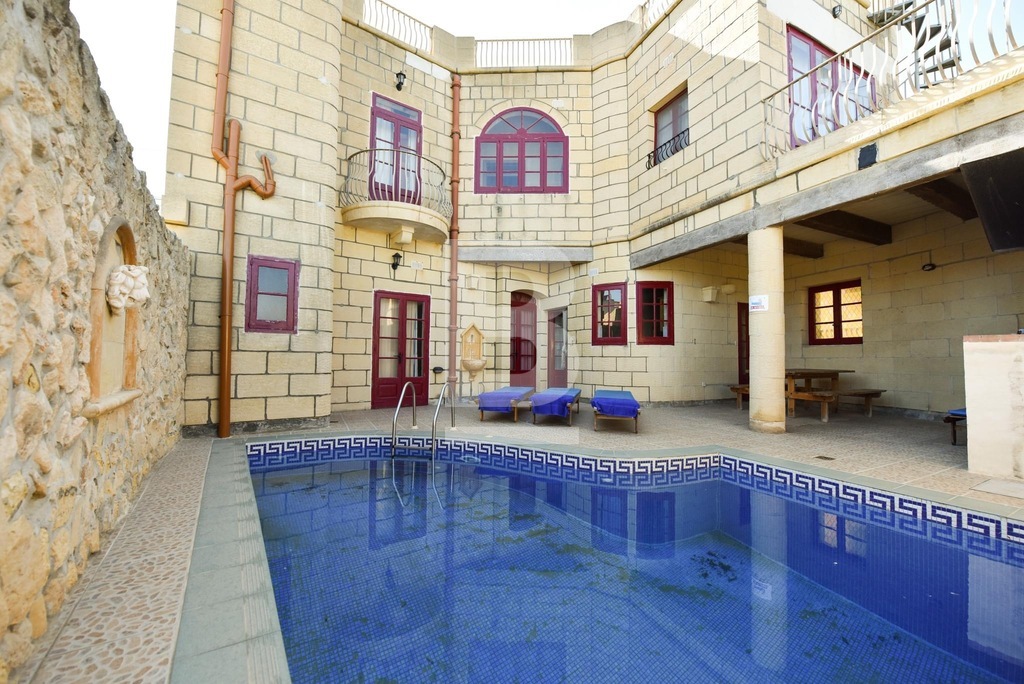 This stunning, fully furnished house of character in Xaghra offers comfortable living just a short walk from a local food shop. A spacious hallway leads to five bedrooms, including four double en-suite rooms and one with two single beds. The master bedroom features a large bed, while two other rooms with twin beds offer flexibility and comfort. All bedrooms are air-conditioned and boast beautiful views. The expansive kitchen, dining, and living area is filled with natural light and opens onto a front terrace with breathtaking countryside and pool views. The kitchen is fully equipped with everyday appliances, including a cooker, fridge, and handy kitchen gadgets. Combining countryside charm with modern conveniences, this air-conditioned property is ideally located for peaceful living while remaining at the heart of Gozo.