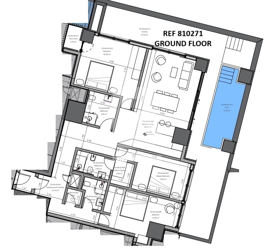 This unit is a 3 bedroom and 3 bathroom 246sqmt unit is located on the ground floor.
