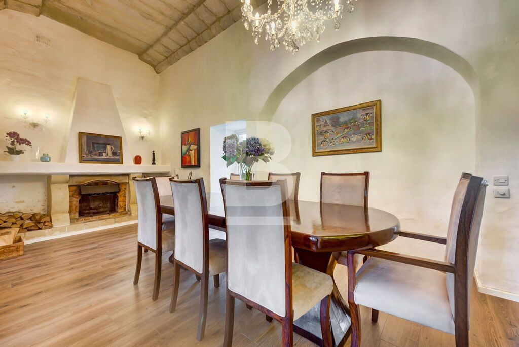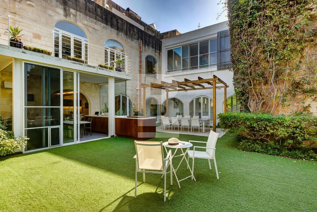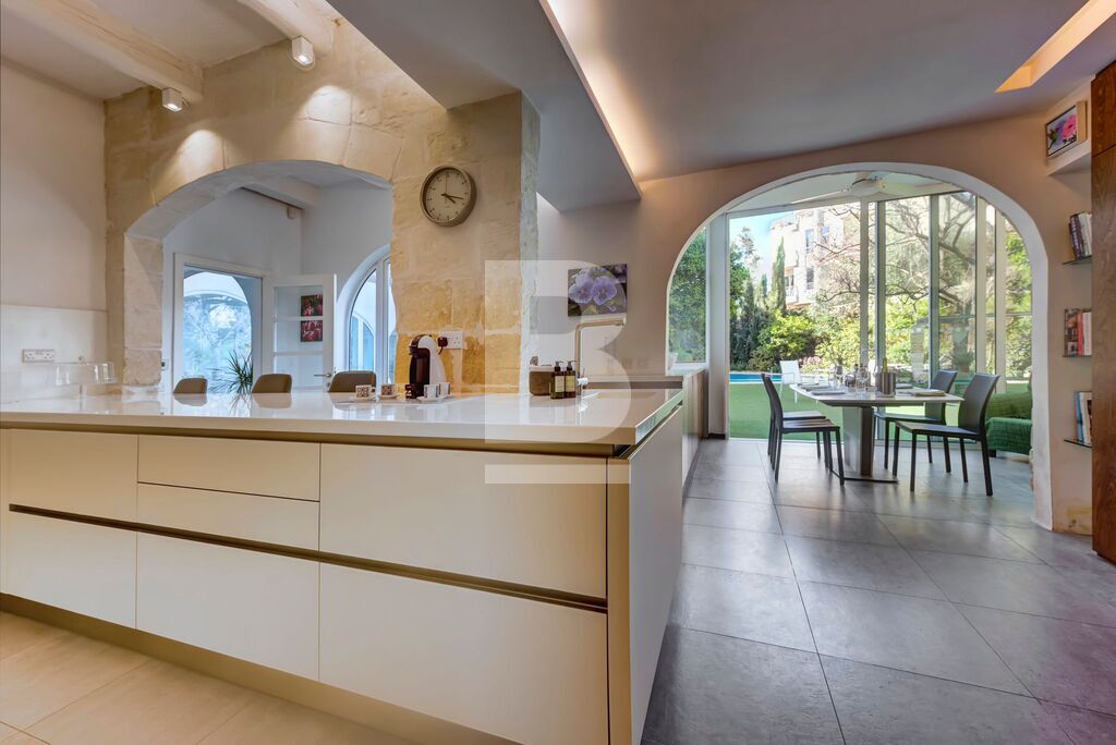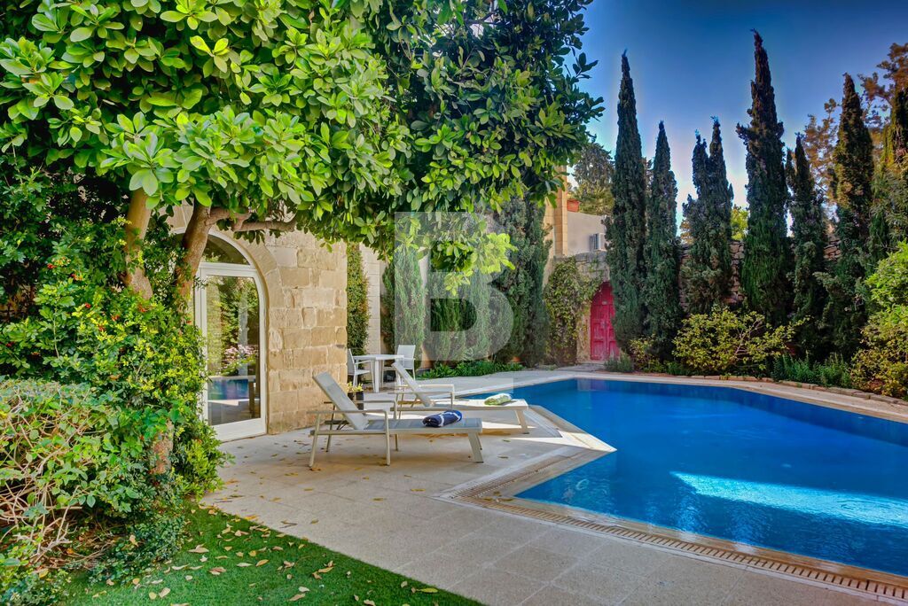 BALZAN. Wonderfully modernised, very bright 5/6-bedroom House of Character finished in great taste, detail and comfort. This special home is nestled in the heart of a lovely, quaint village. Upon entering through a characteristic village door, with a Maltese balcony above, one steps into a hallway that leads to a perfectly designed balance of old and new. The house is focussed around a pretty garden with several orange trees and established plants, an eating area that is shaded in the summer, sitting area and pool. The property benefits from two garages – one linked internally at the front of the house; the second accessed through the garden.