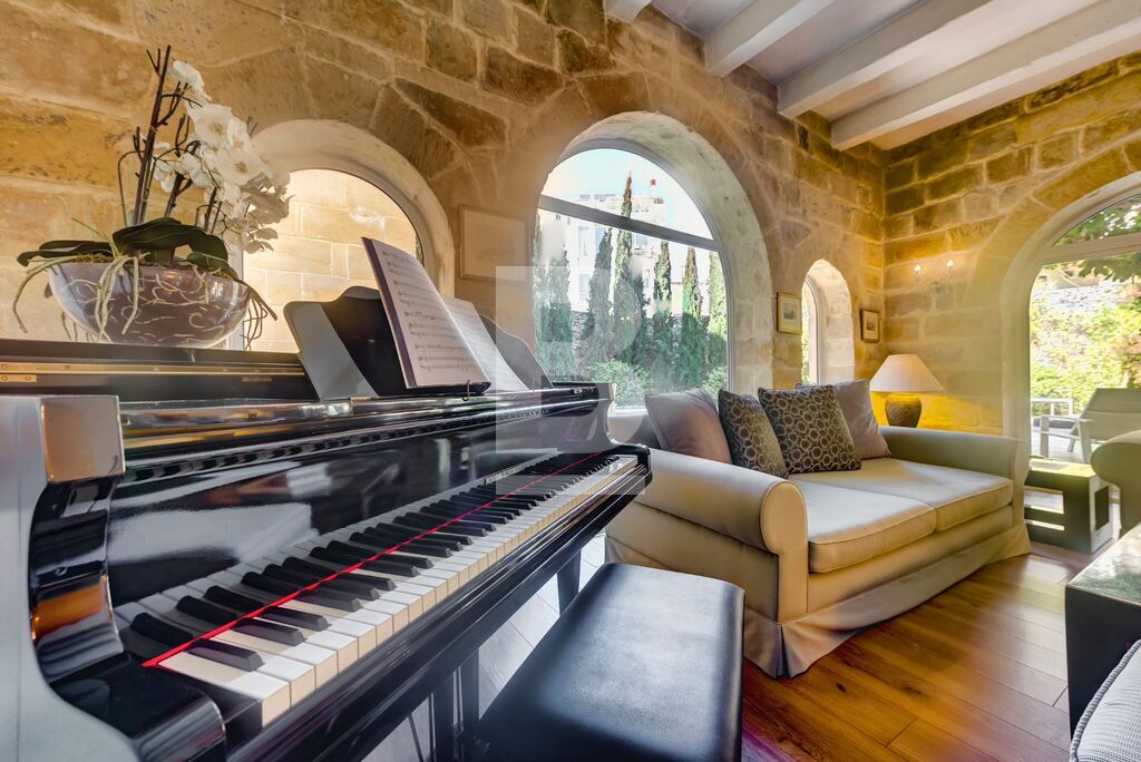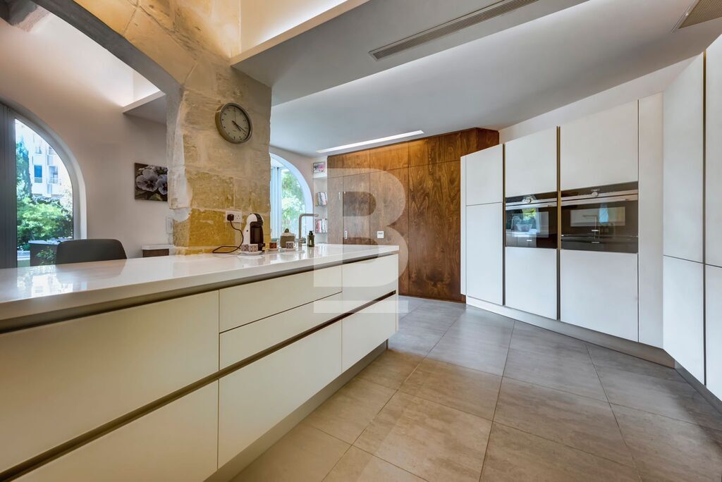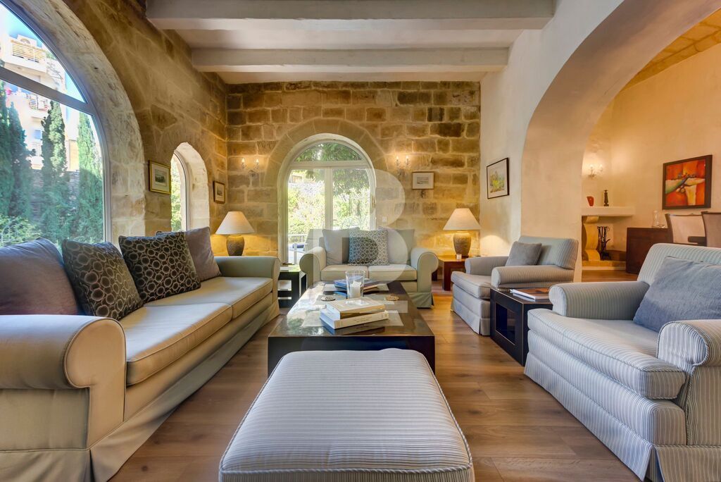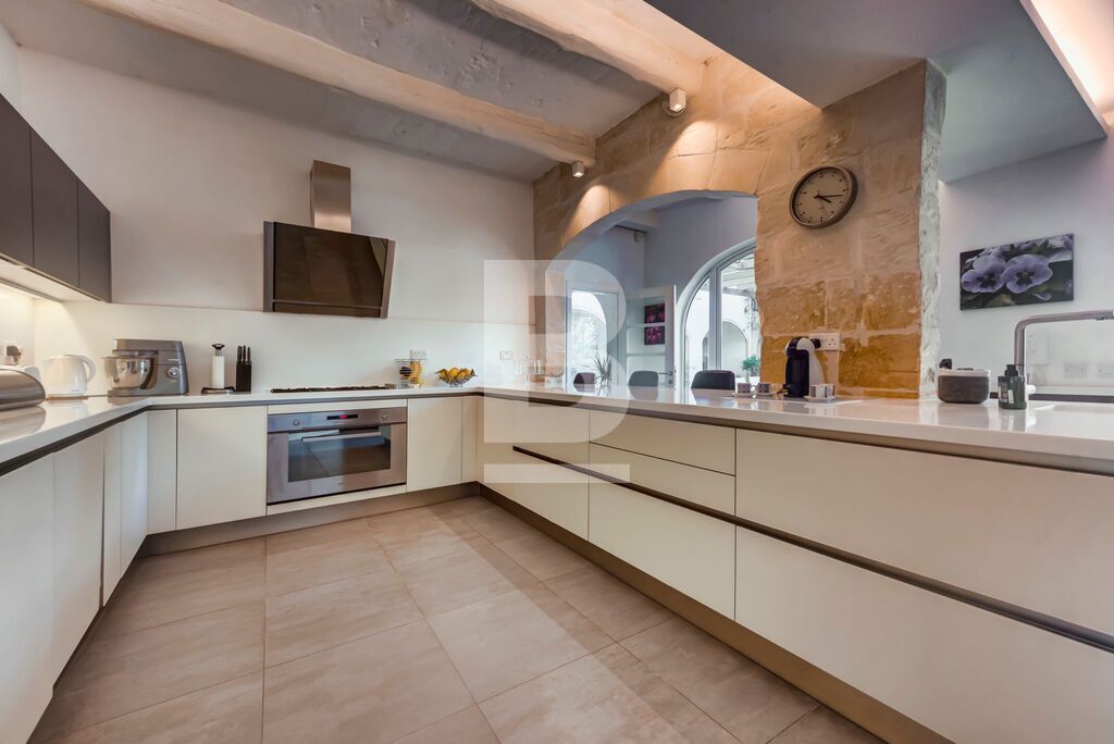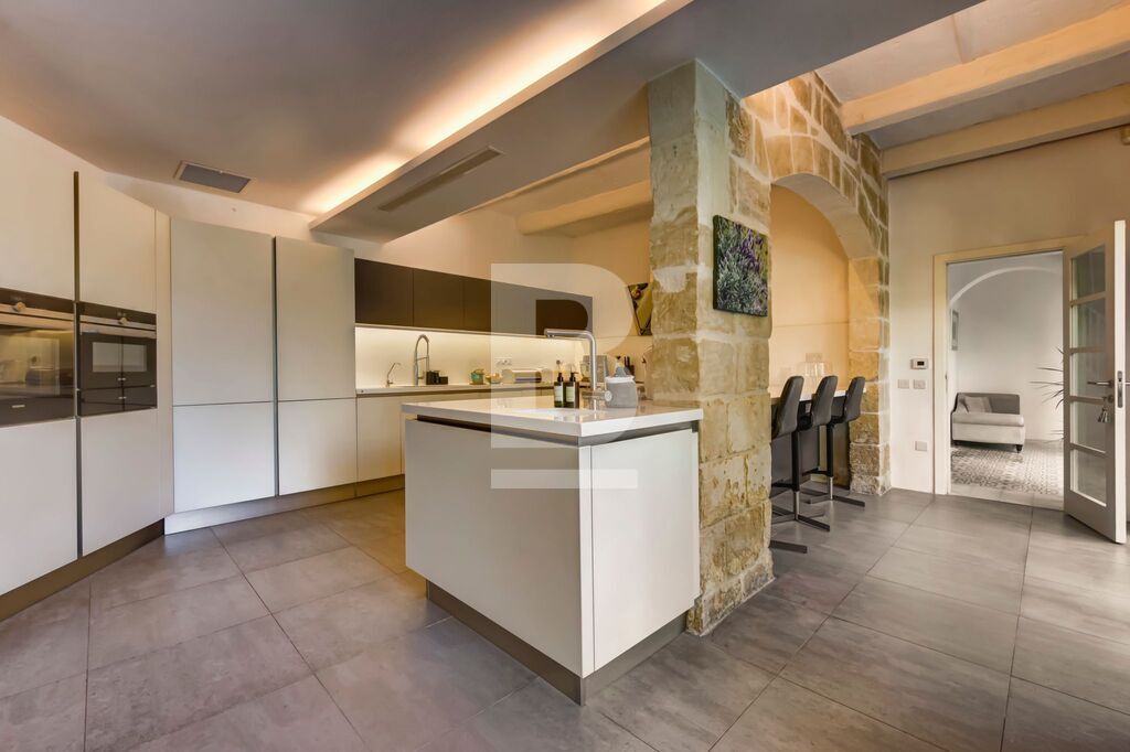 BALZAN. Wonderfully modernised, very bright 5/6-bedroom House of Character finished in great taste, detail and comfort. This special home is nestled in the heart of a lovely, quaint village. Upon entering through a characteristic village door, with a Maltese balcony above, one steps into a hallway that leads to a perfectly designed balance of old and new. The house is focussed around a pretty garden with several orange trees and established plants, an eating area that is shaded in the summer, sitting area and pool. The property benefits from two garages – one linked internally at the front of the house; the second accessed through the garden.