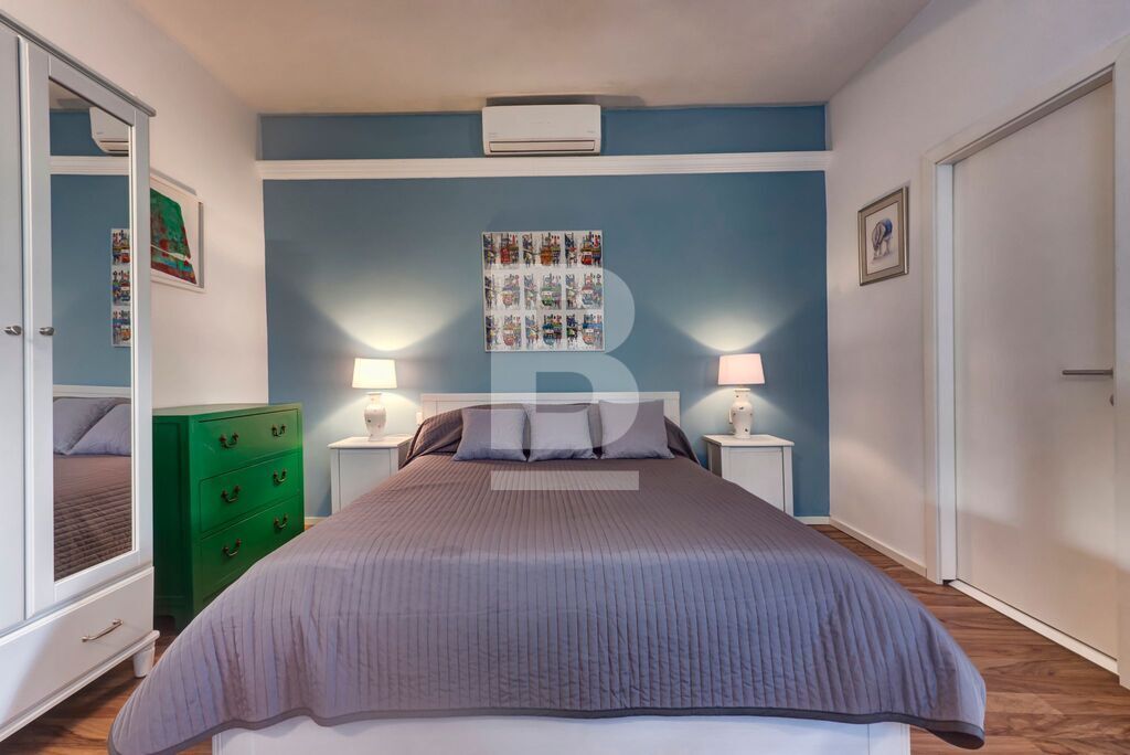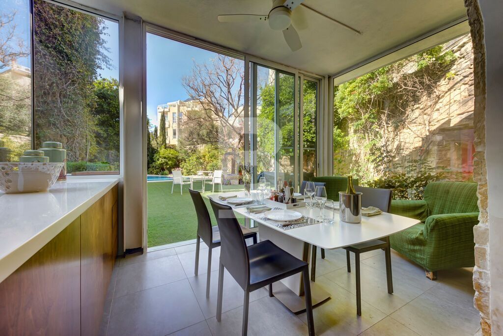 The ground floor comprises an en-suite guest Bedroom, with a private small courtyard, a laundry room and a storage room. Off the entry hall is a cosy T.V. room. The centrepiece of the ground floor is a stunning, fully fitted Kitchen with a breakfast/dining area in a conservatory style that leads onto the garden. Along the sunny corridor, past a guest toilet, is a beautiful 300 year-old Dining Room with a glassed-in wine cellar (with a/c, mounted wine racks & built-in fridges) and a spacious Living Room, with a wood-burning stove, overlooking the pool & garden.
