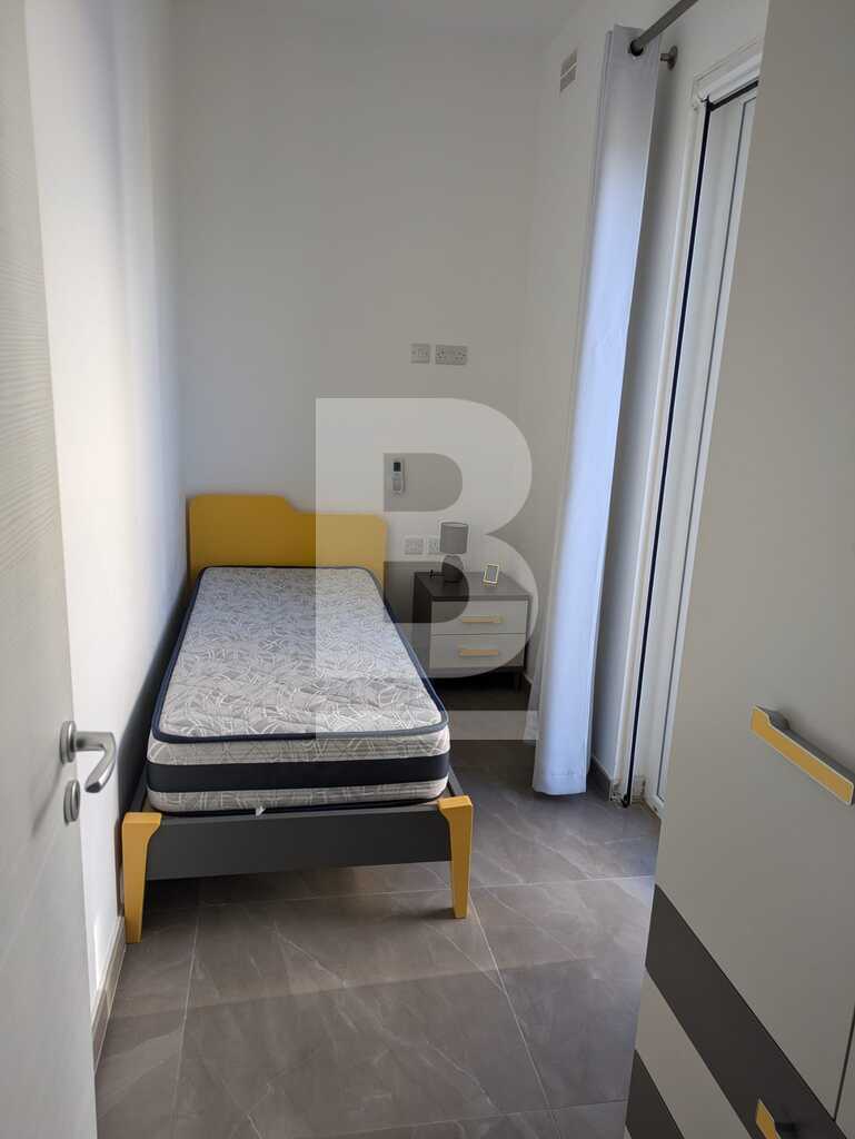 Bright, third floor APARTMENT located just a few minutes away from the sea, conisisting of one double bedroom, one single, main shower, open plan kitchen/sitting/dining room, front balcony, equipped with washing machine and air-conditioning.