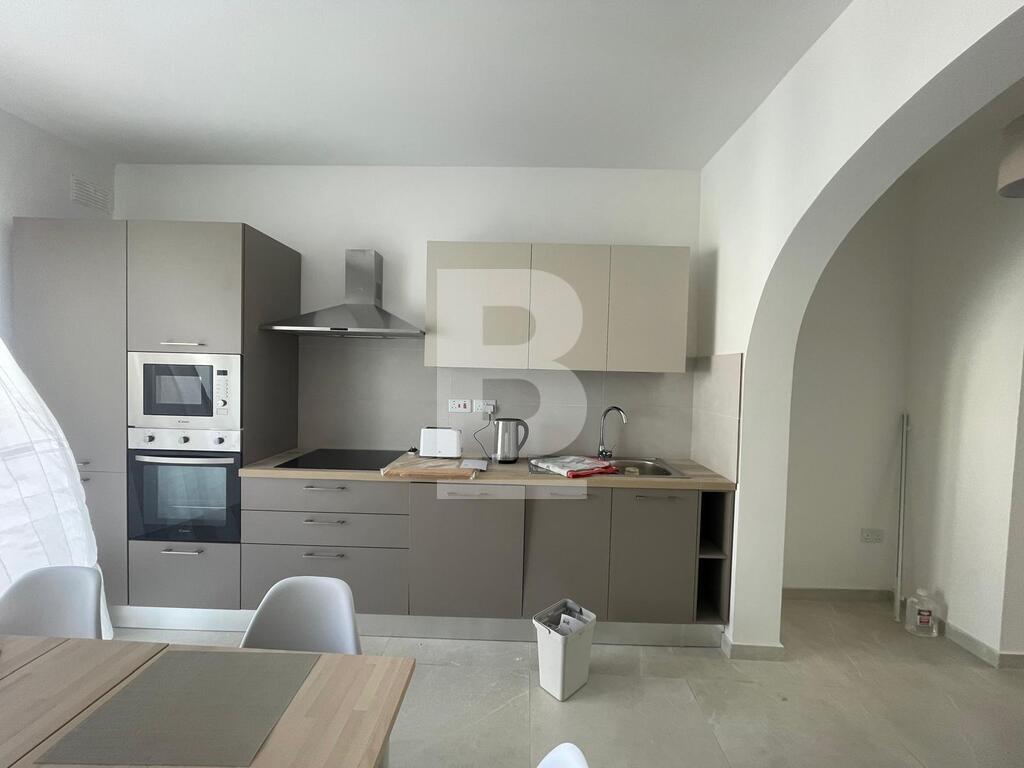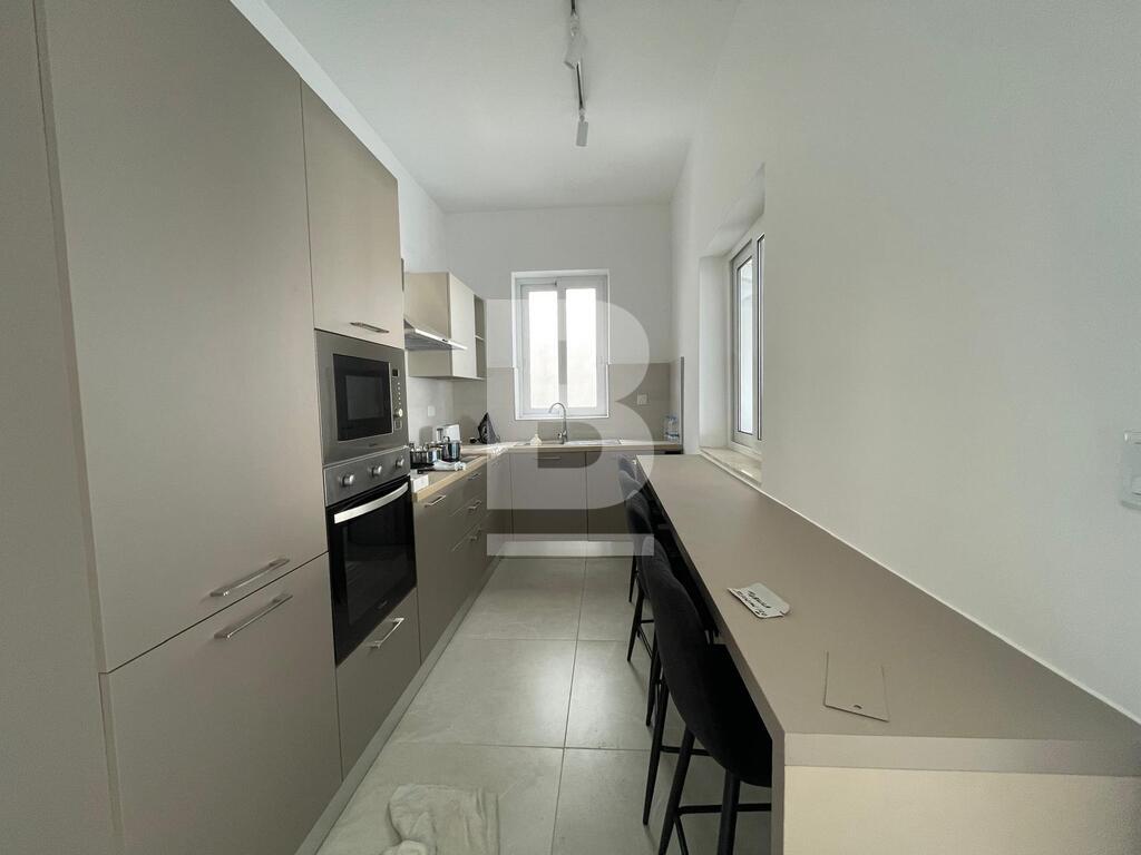 Also on the first floor is a spacious two-bedroom apartment. It includes two bathrooms, a kitchen that opens onto a terrace, and a combined dining and living area. Both bedrooms are well-sized, offering flexibility for family living or hosting guests.