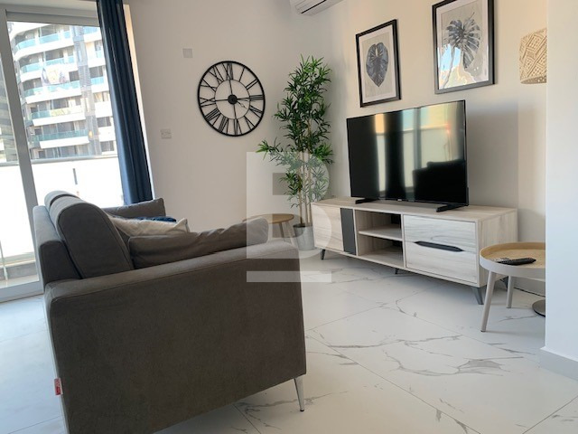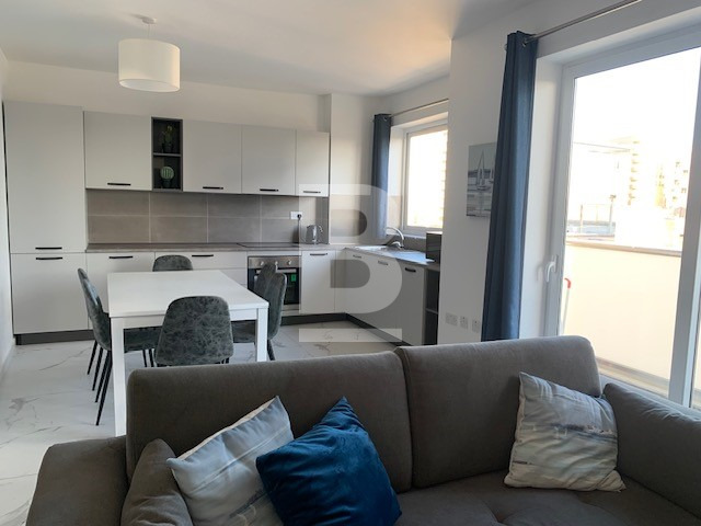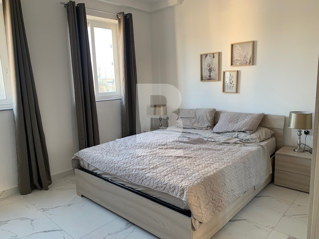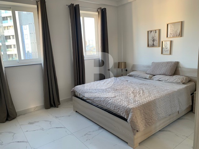 Fully furnished, fifth floor APARTMENT, forming part of a recently renovated block in Sliema. Opposite Tigne Point and within walking distance to all amenities. The property is served with a lift and comprises a welcoming entrance hallway, an open plan fully equipped kitchen/ living/ dining area, leading out onto a balcony, main shower room, two double bedrooms, and master having an en-suite and another corner balcony. Extras include: lift, dishwasher, washing machine, microwave, dryer, TV and air conditioning throughout.