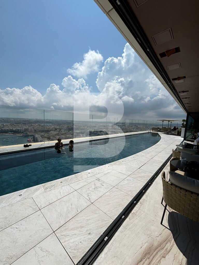 A stylish and modern one-bedroom, two-bathroom apartment located on the 29th floor of Mercury Tower, St. Julian's. This high-rise property offers stunning panoramic views of the city and the sea, blending luxury and comfort in one of Malta's most iconic developments. The apartment features a spacious living area, a fully equipped kitchen, and high-end finishes throughout. Residents will also benefit from access to the tower's premium amenities, including a concierge service, fitness center, and rooftop terrace. Perfect for those seeking an upscale lifestyle in a prime location