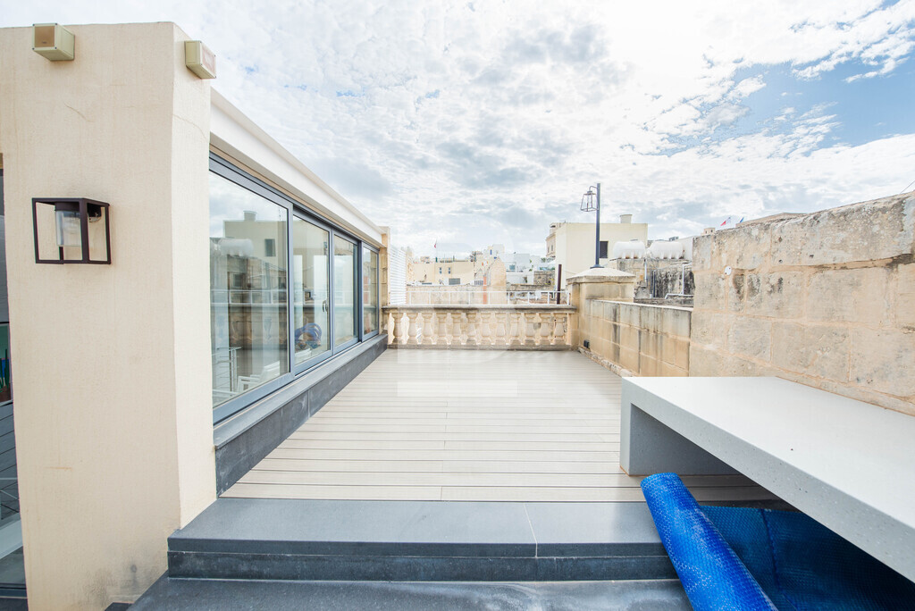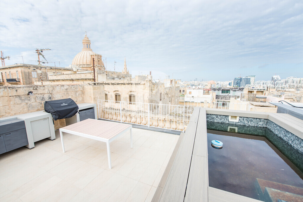 An absoutely stunning two-bedroom triplex penthouse located in the heart of Valletta, within a meticulously converted palazzo where no expense has been spared. This unique property welcomes you to a spacious living and dining area, featuring beautifully restored traditional details. The fully equipped kitchen opens onto a charming side terrace, perfect for breakfast or casual meals, and a guest WC adds convenience to this level.The second floor offers two flexible spaces, including a primary bedroom with its own en-suite shower and ample storage. The second room can be used either as a bedroom or a study, also featuring an en-suite shower, providing versatility to suit your needs.On the top floor, you’ll find an entertainer’s paradise with a BBQ area, plunge pool, and generous deck space offering stunning sea views-ideal for relaxing or hosting gatherings. This one-of-a-kind property seamlessly blends historic charm with modern luxury, making it a rare opportunity for those seeking a prestigious rental in Valletta. A must see !