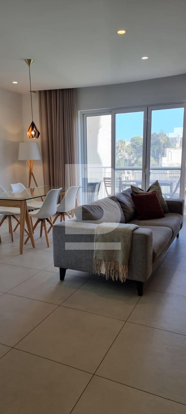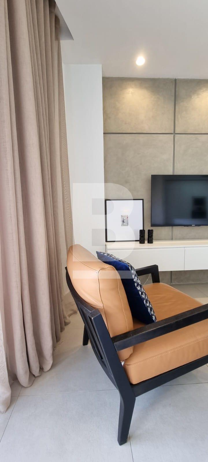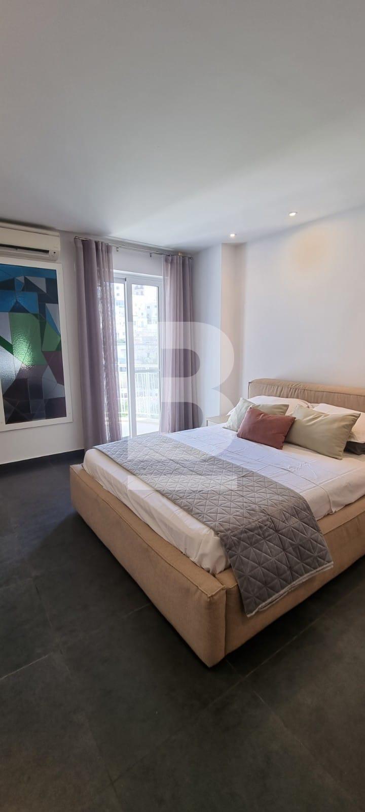 Located in the sought after area of Ballutta Bay, is this very modern and bright S/E facing apartment, the open plan living area leads onto the front terrace whereby you will witness unobstructed views of St.Julian's Valley and Balluta area. The morning sun fills in this area, ideal to enjoy a cup of coffee before a busy day ahead, the swimming area is located just 1 minute walk, a quick stroll down the road, and so is the promenade, coffee shops, supermarkets and restaurants. The sleeping quarters comprise of two bedrooms, one has been converted into a home office and is equipped with a desk and sofa bed to welcome guests; the main bathroom is equipped with a hot tub, whilst the private en-suite facilities with the master suite is equipped with a high pressure shower. Occupants of this lovely property, can make use of it's interconnecting lock up garage. A very good value for money property that must be viewed to be appreciated.