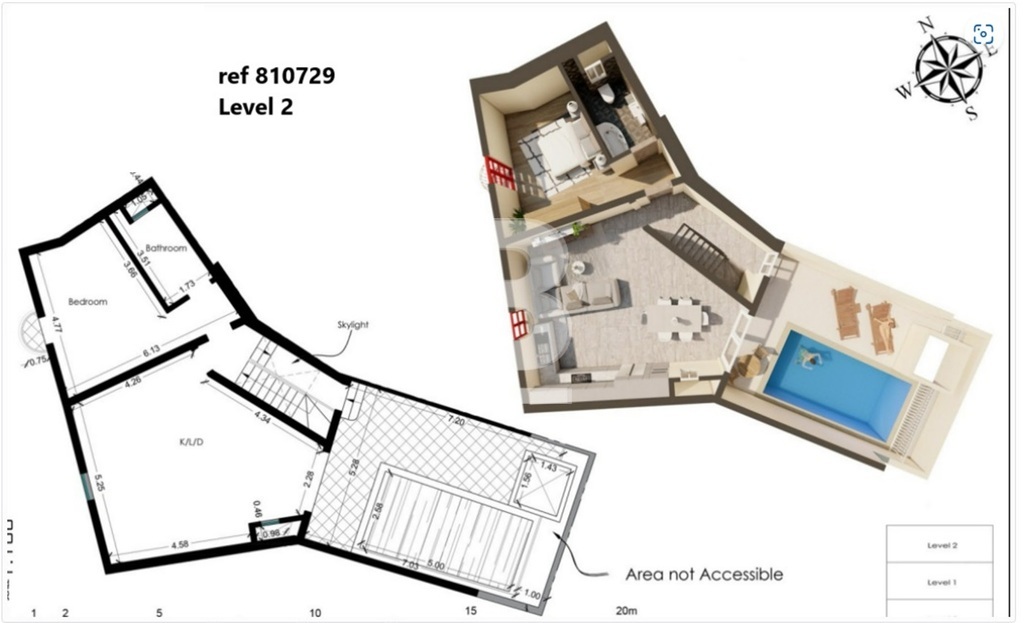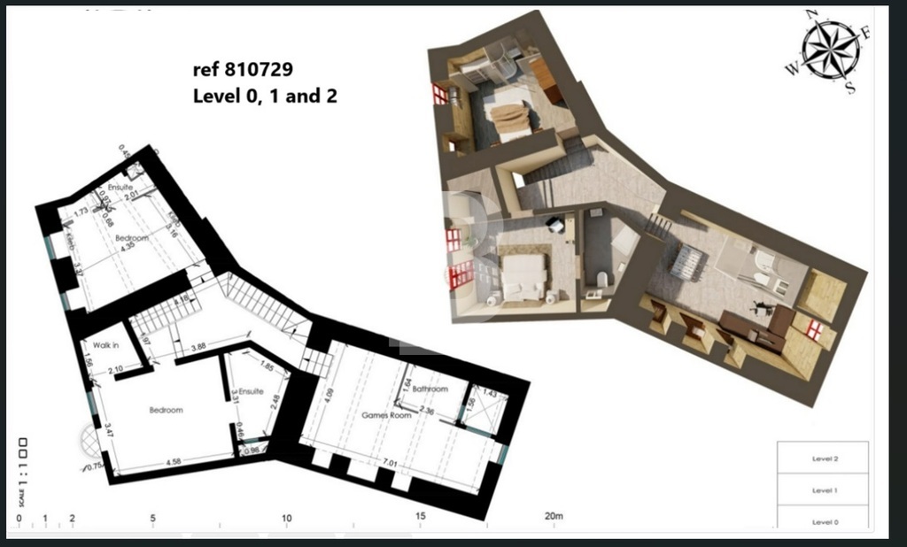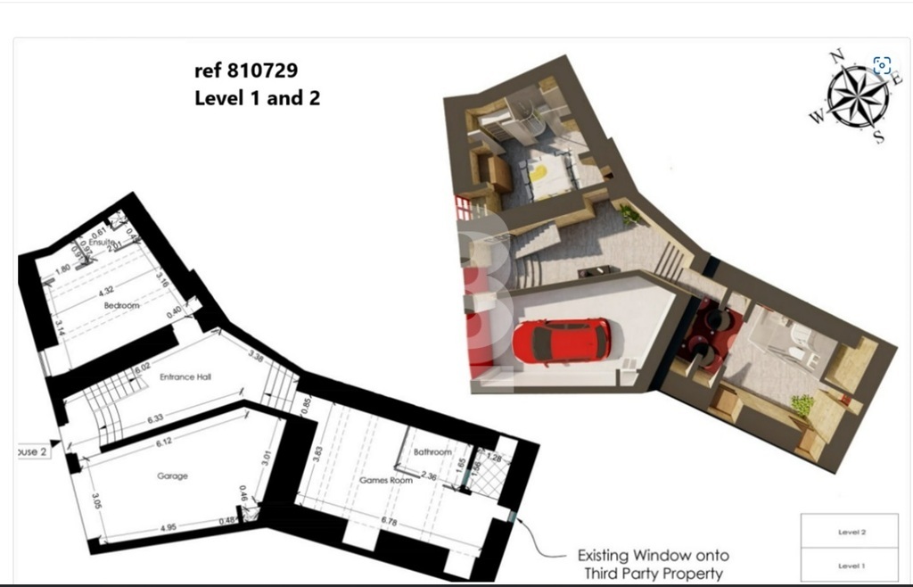 This charming house of character on plan is located in the tranquil village of Kercem offering a generous internal area of 315 square meters and comes with permits in hand. Designed to span three floors, the ground floor features a private garage leading to a double bedroom with an en suite bathroom, as well as a game room with a separate bathroom. The second floor offers two additional double bedrooms, both en suite, along with a second game room that also includes an independent bathroom. On the third floor, the layout is completed with another double bedroom with an en suite, alongside a spacious combined kitchen, dining, and lounge area that opens onto a wide roof terrace. This terrace is envisioned to include a pool, perfect for summertime leisure and barbecue celebrations. Nestled in a quiet, scenic area, this property presents a unique opportunity to create your dream home in a serene and picturesque setting.