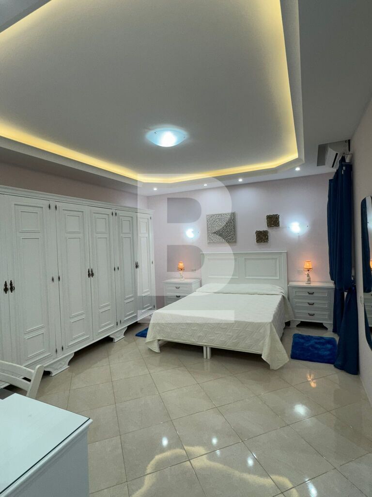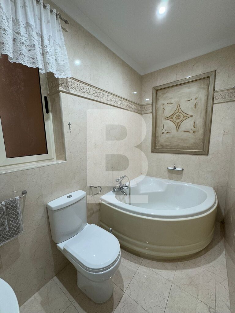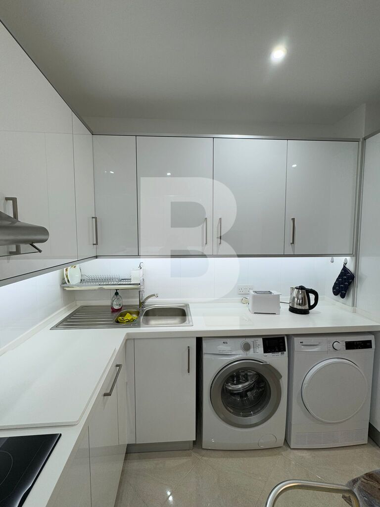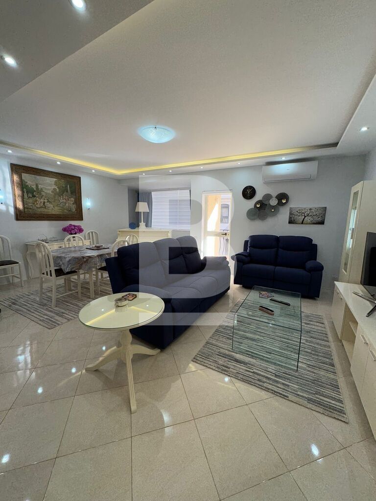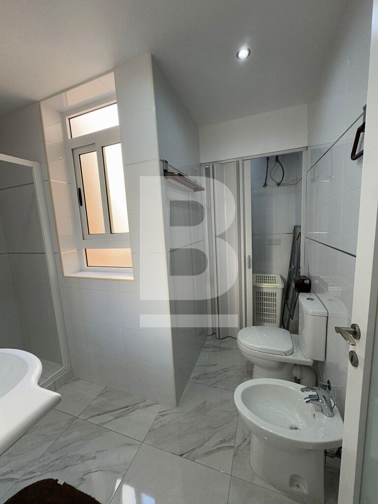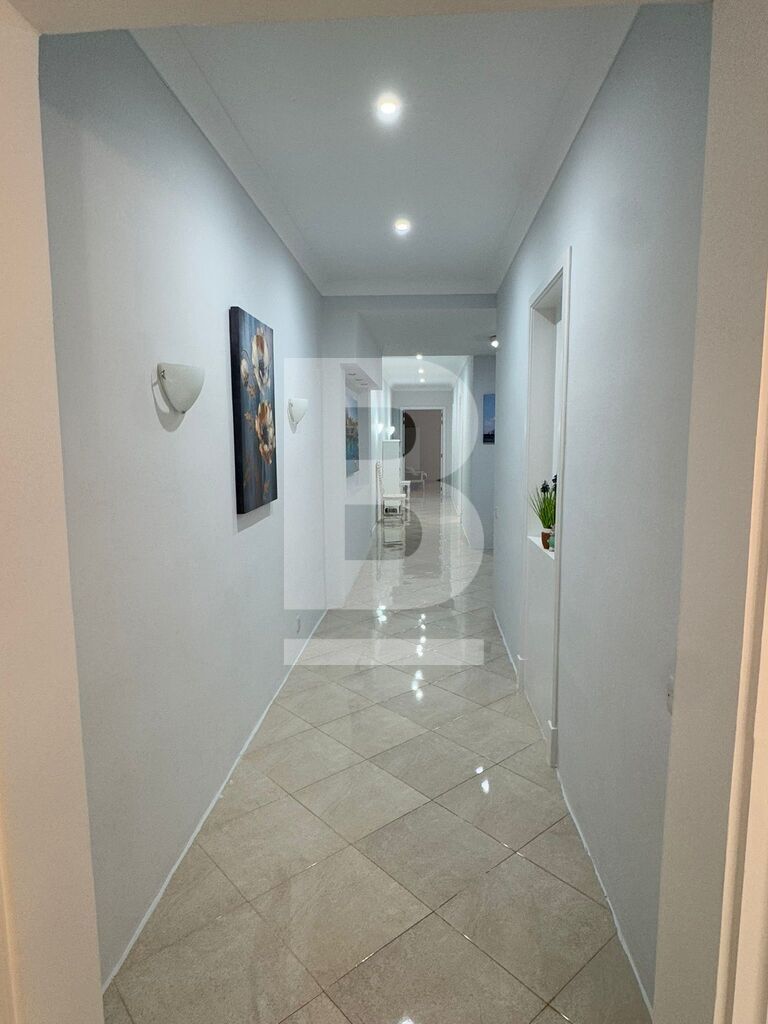 This stylish 3-bedroom apartment features a bright and open living area where a white grand piano takes center stage, complemented by contemporary furniture and floor-to-ceiling windows that flood the space with natural light. The fully equipped kitchen boasts high-end appliances, glossy cabinetry, and a spacious island, perfect for cooking and entertaining. Each bedroom is generously sized, , while the other rooms provide comfort and versatility. The back terrace overlooks lush garden views, adorned with cozy outdoor seating and vibrant planters, creating a serene oasis for relaxation or gatherings.