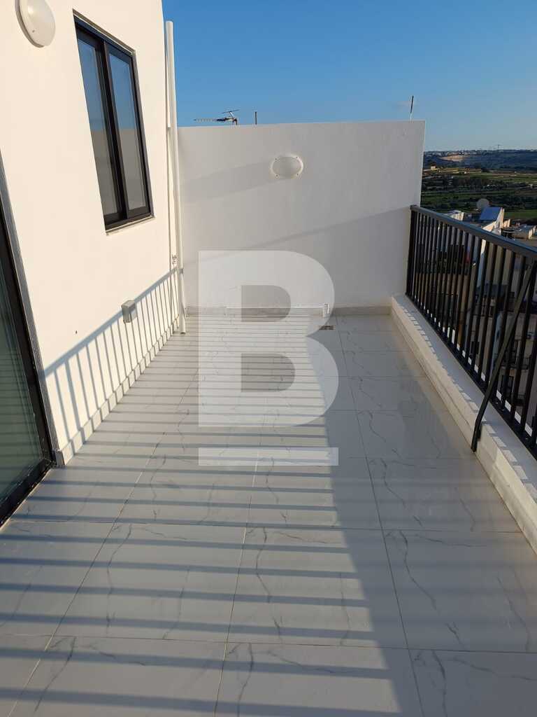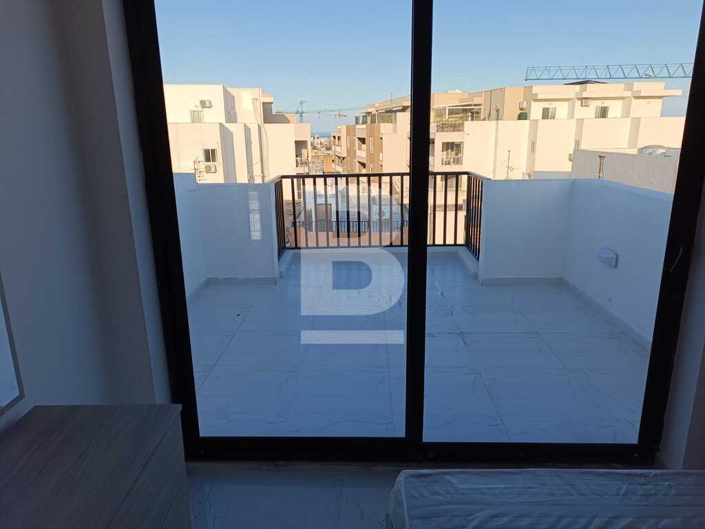 PENTHOUSE located in a residential area of Qawra close to Kennedy Grove, consisting of a double bedroom, main shower, open plan kitchen/sitting/dining area leading onto a good sized front TERRACE, equipped with washing machine and a/c.