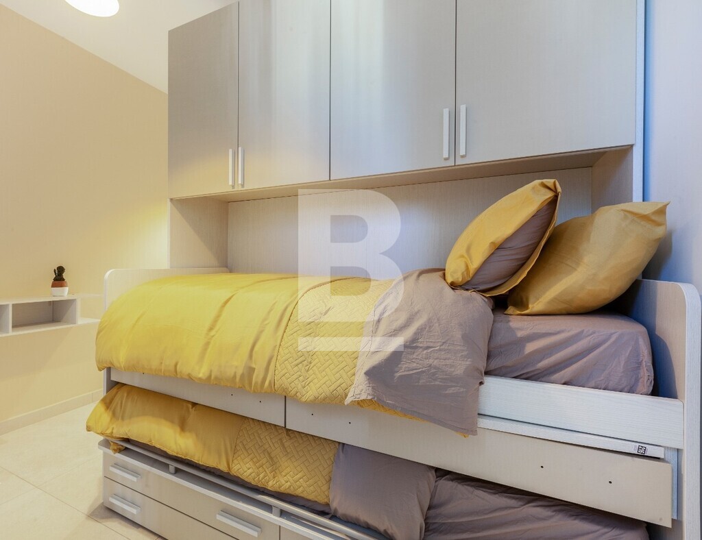 Very Bright modern Penthouse enjoying open views and located just off Msida Marina. A lovely property especially for sunset lovers, those who enjoy witnessing Malta's sunset directly from their private terrace. It's open plan living area leading onto a good sized outdoor area makes this an extended living space, the kitchen is fully equipped with energy saving appliances, crockery and cutlery etc, whilst the sleeping quarters comprise of three good sized bedrooms, 2 of which are furnished with double beds, whilst the 3rd bedroom is equipped with two single bunk beds, that could be seperated by a simple step, this optimises the room's capacity to welcome guests or accomodate other family members. Msida Marina and all amenities are located within 3 minute walk, making this location a quite yet central area with easy link via public transportation.