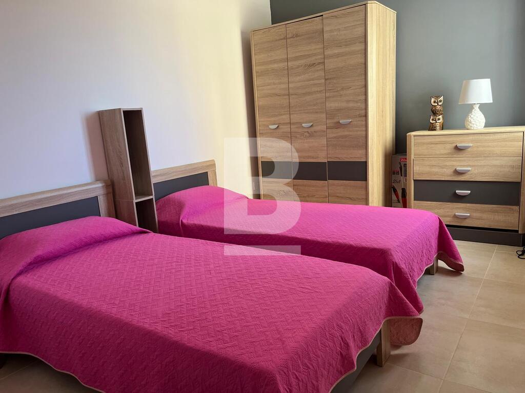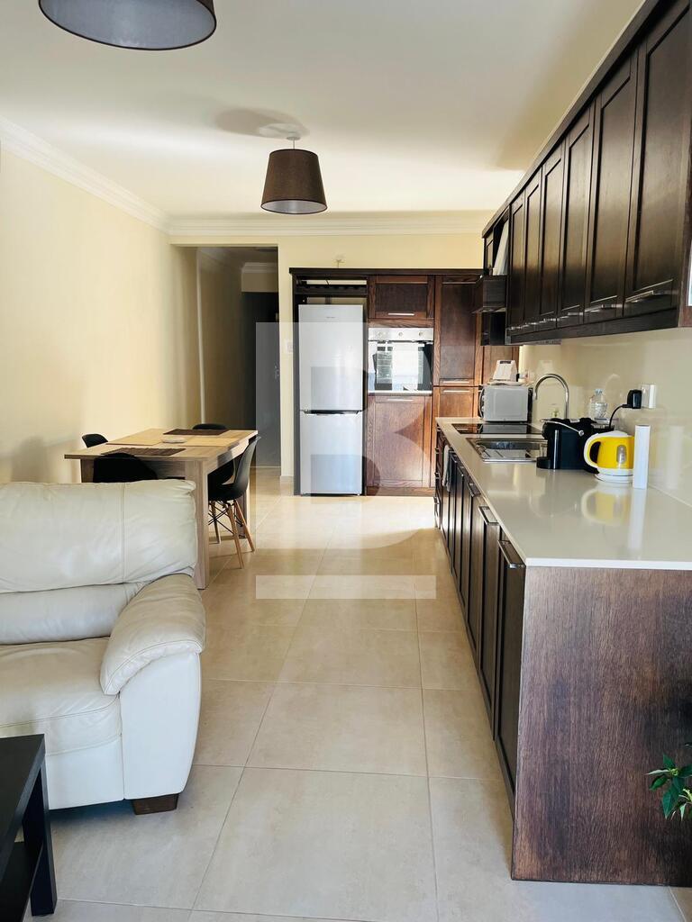 A bright and spacious furnished apartment situated in a very nice and quiet area close to all amenities. Accommodation comprises hall, sitting / dining / kitchen area with back balcony, 2 bedrooms (one with twin beds). Property includes washing machine, fully equipment kitchen, AC and TV.