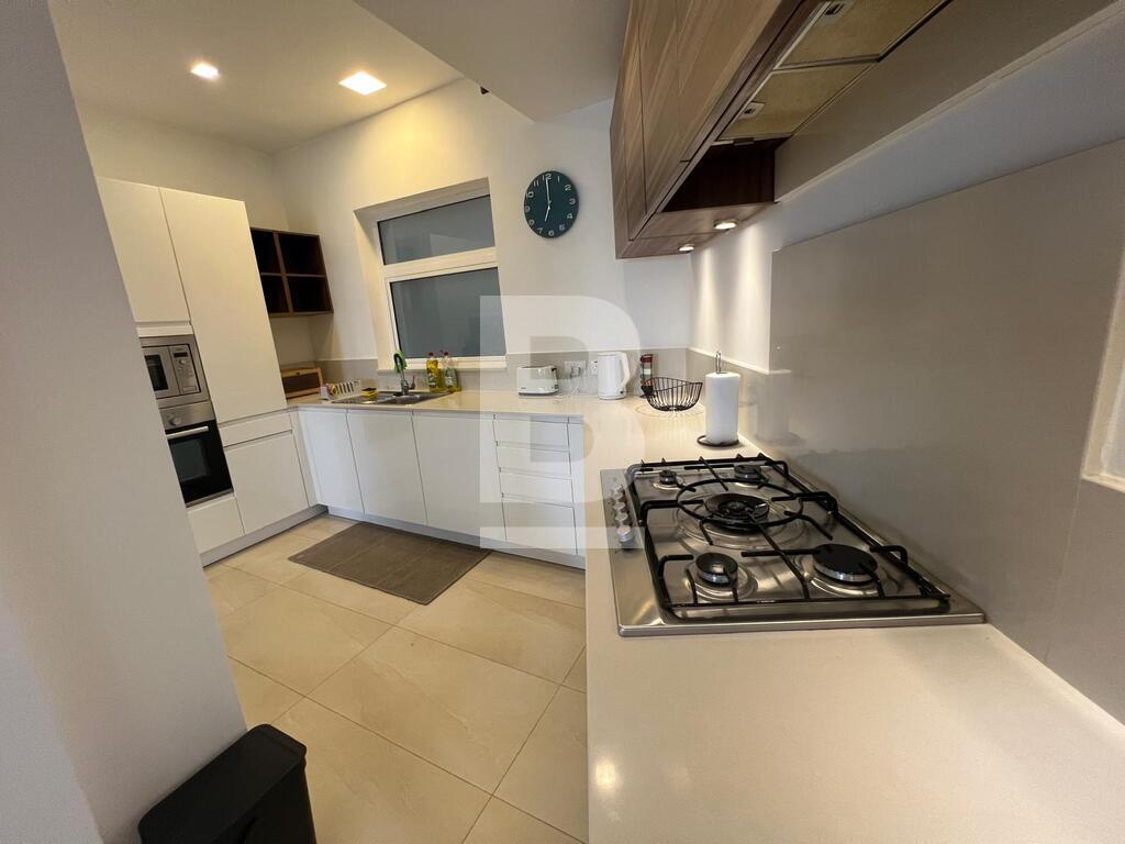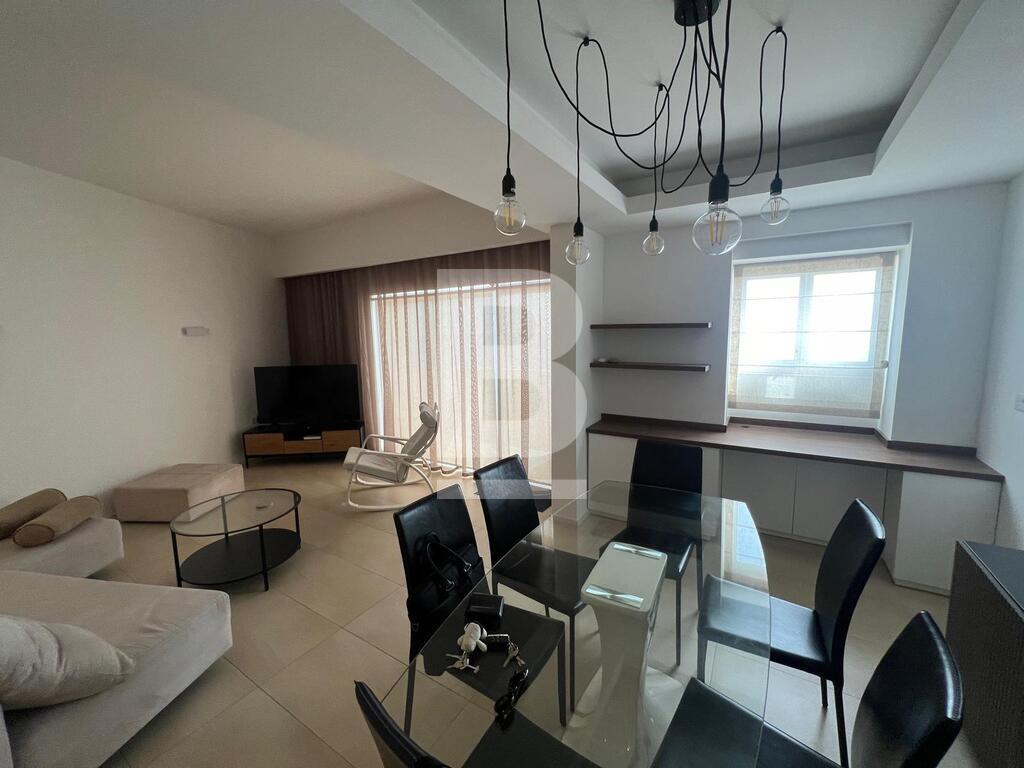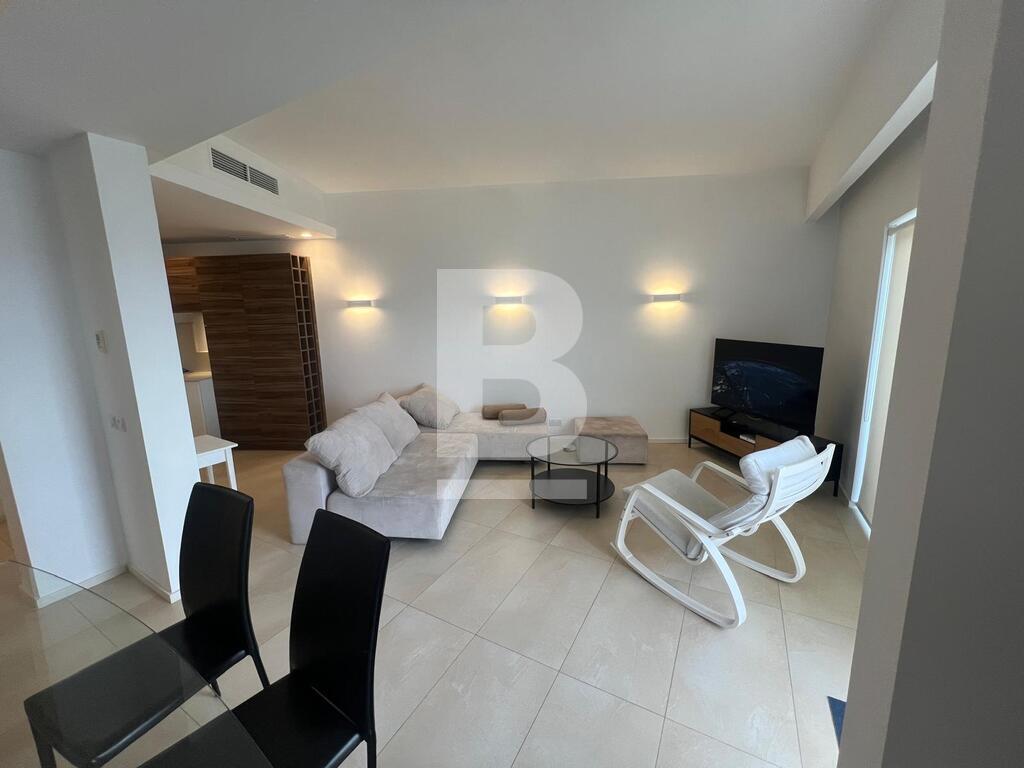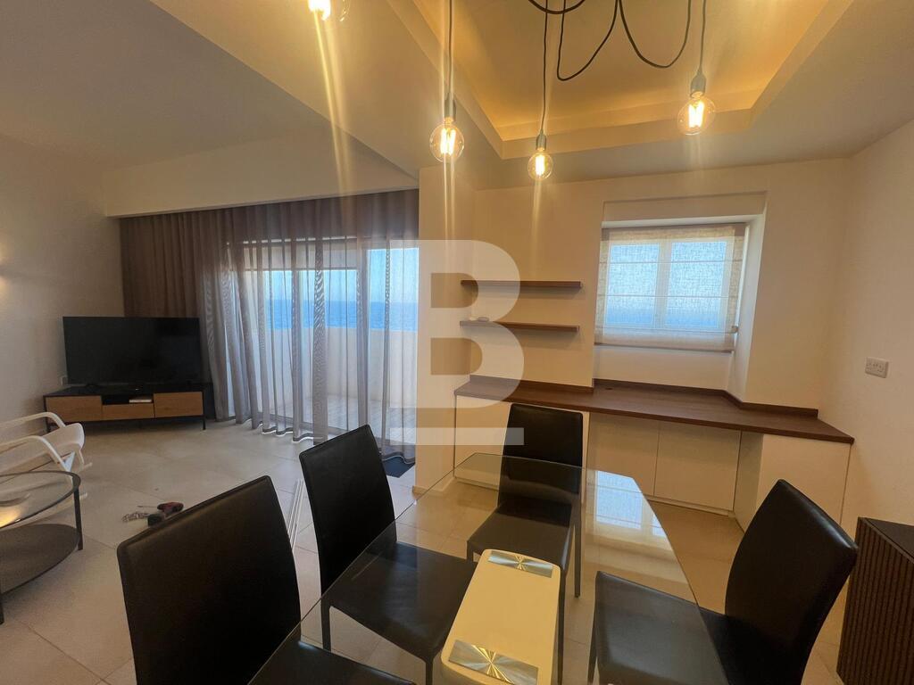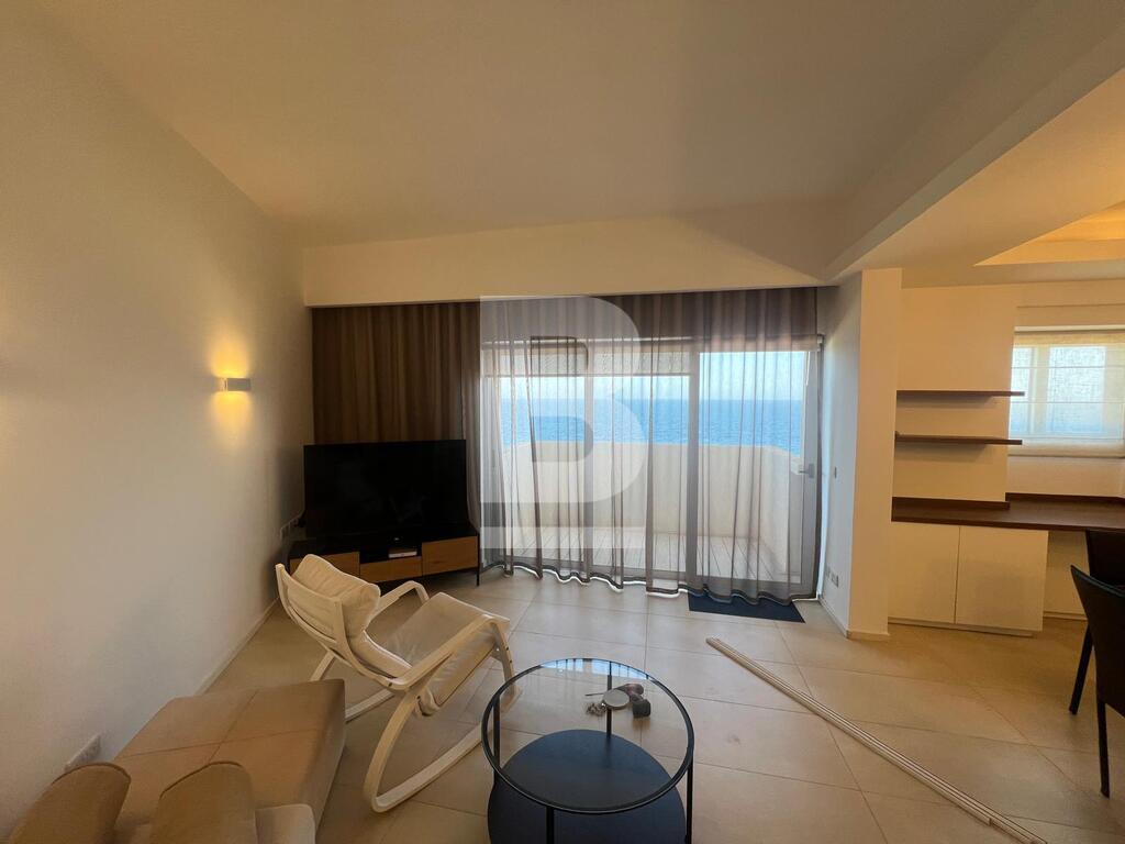 Fourth-floor SEAFRONT apartment in Sliema. The property consists of an open-plan kitchen, living, and dining area leading onto a front balcony enjoying sea views, two double bedrooms, the main with an en suite shower, and a main bathroom.
