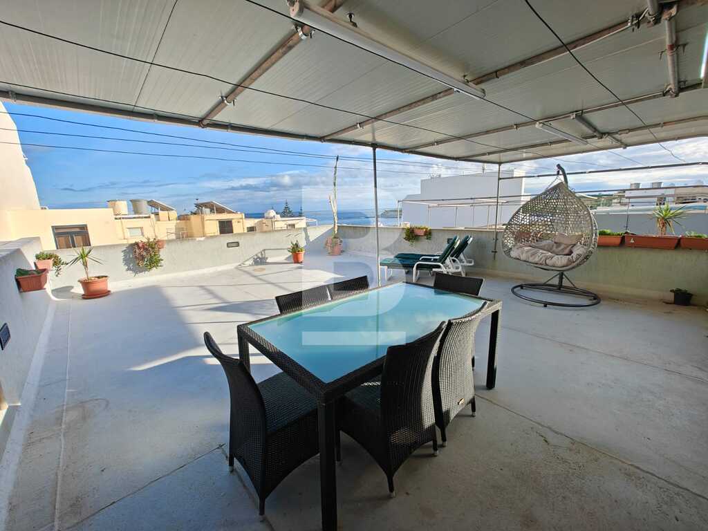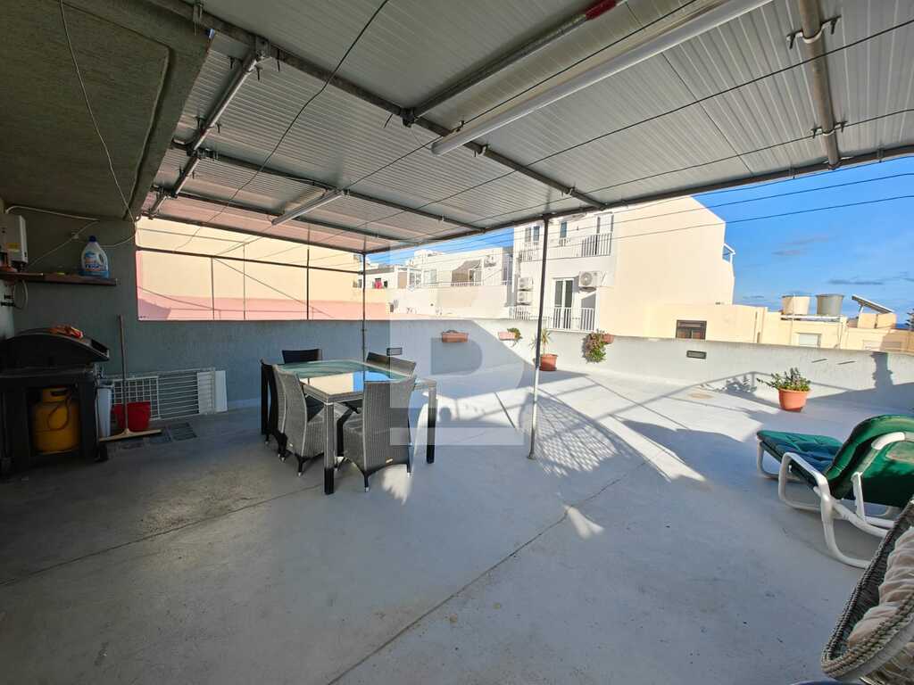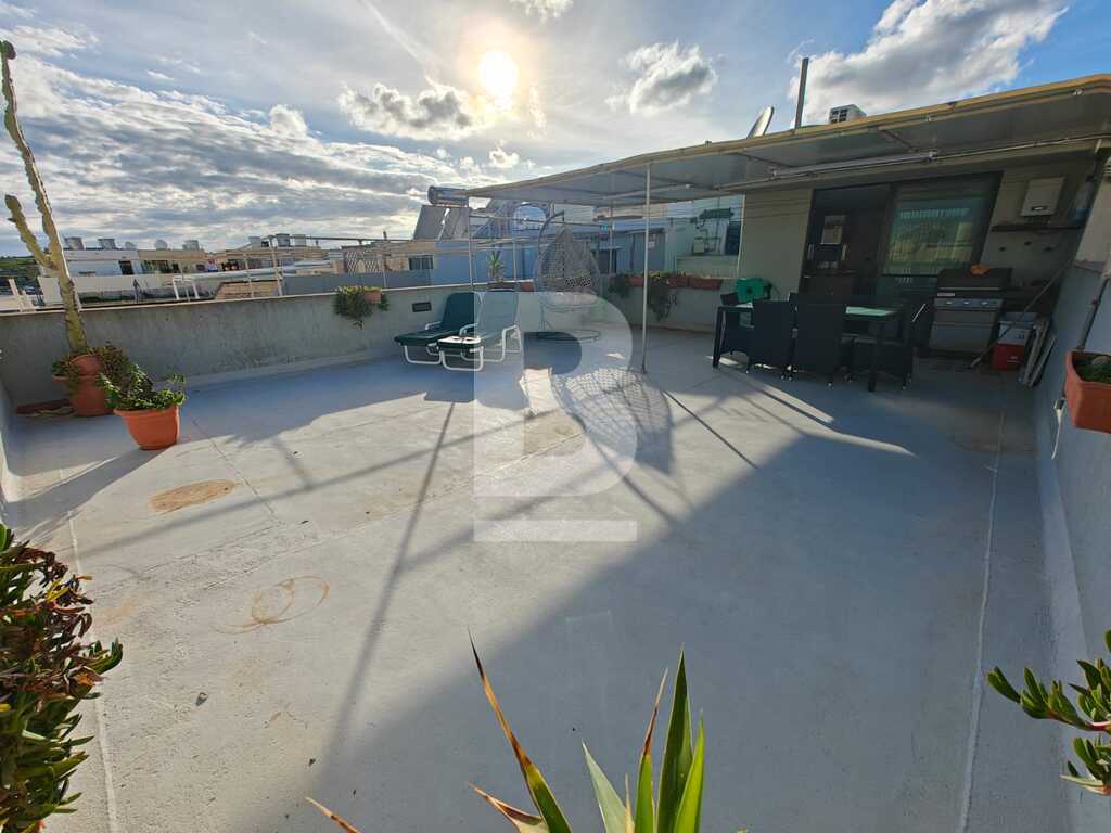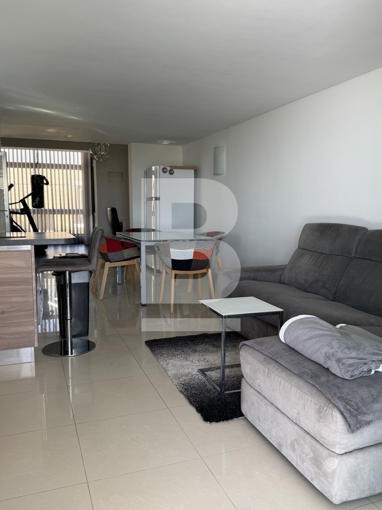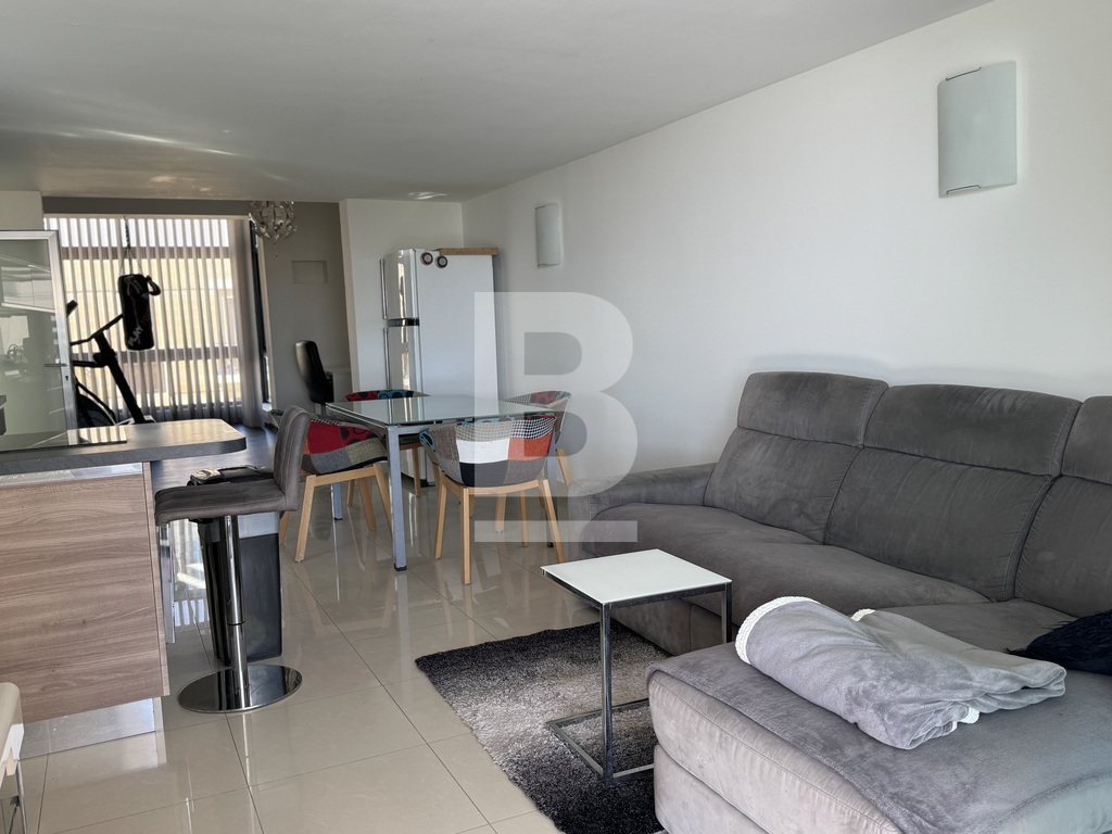 This highly finished duplex maisonette is nestled in a quiet residential area of Marsascala, just minutes away from St. Thomas Bay and close to all essential amenities. The property welcomes you with an elegant entry hall that leads into a spacious open-plan kitchen, living, and dining area, complemented by a front balcony. It features three well-appointed bedrooms, including a master with an en-suite shower room. On the second floor, an additional living area with a fully equipped kitchen opens onto a generous roof terrace, offering distant sea views—perfect for entertaining. This level also includes a gym area, which can be easily converted into a fourth bedroom, along with a dedicated laundry space. Fully air-conditioned and equipped with modern appliances, this home ensures both comfort and convenience. Viewing is highly recommended to fully appreciate its quality and layout.