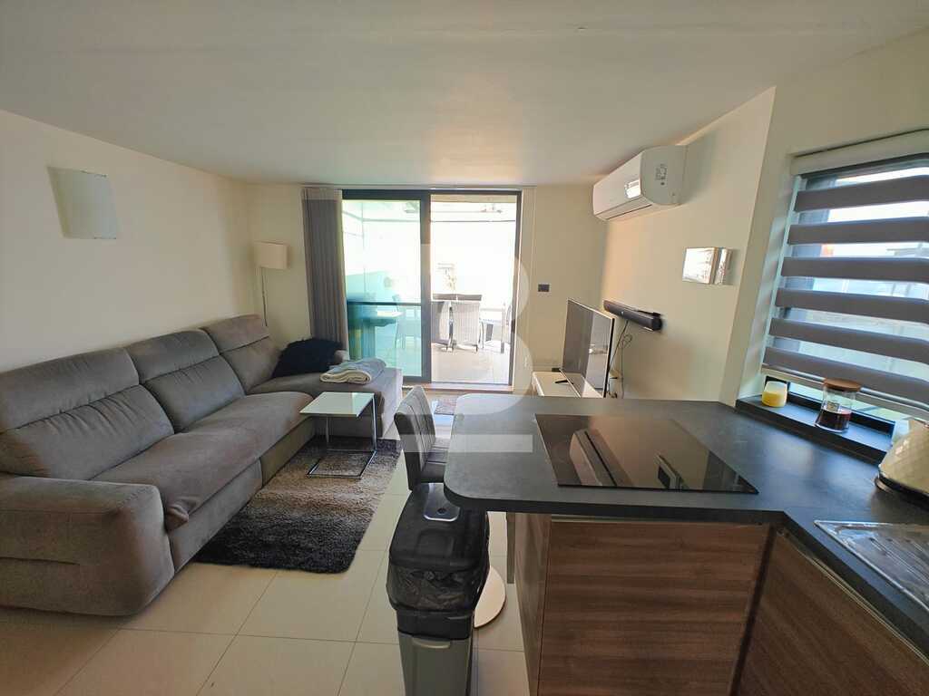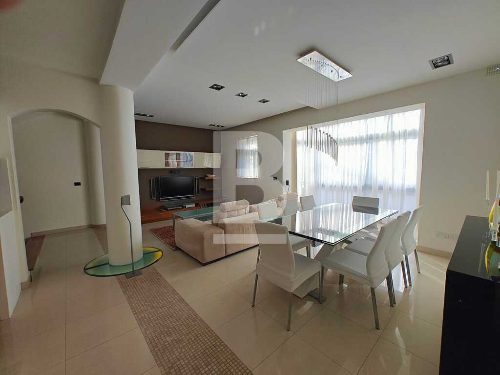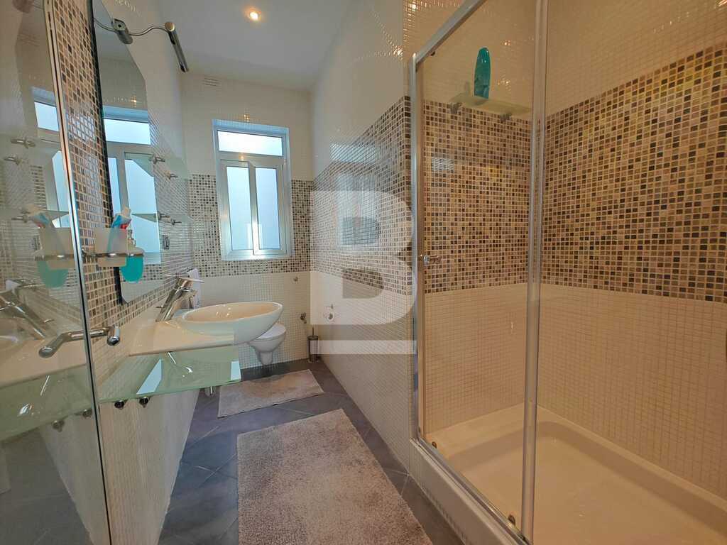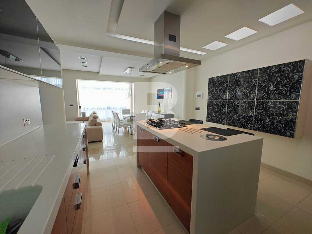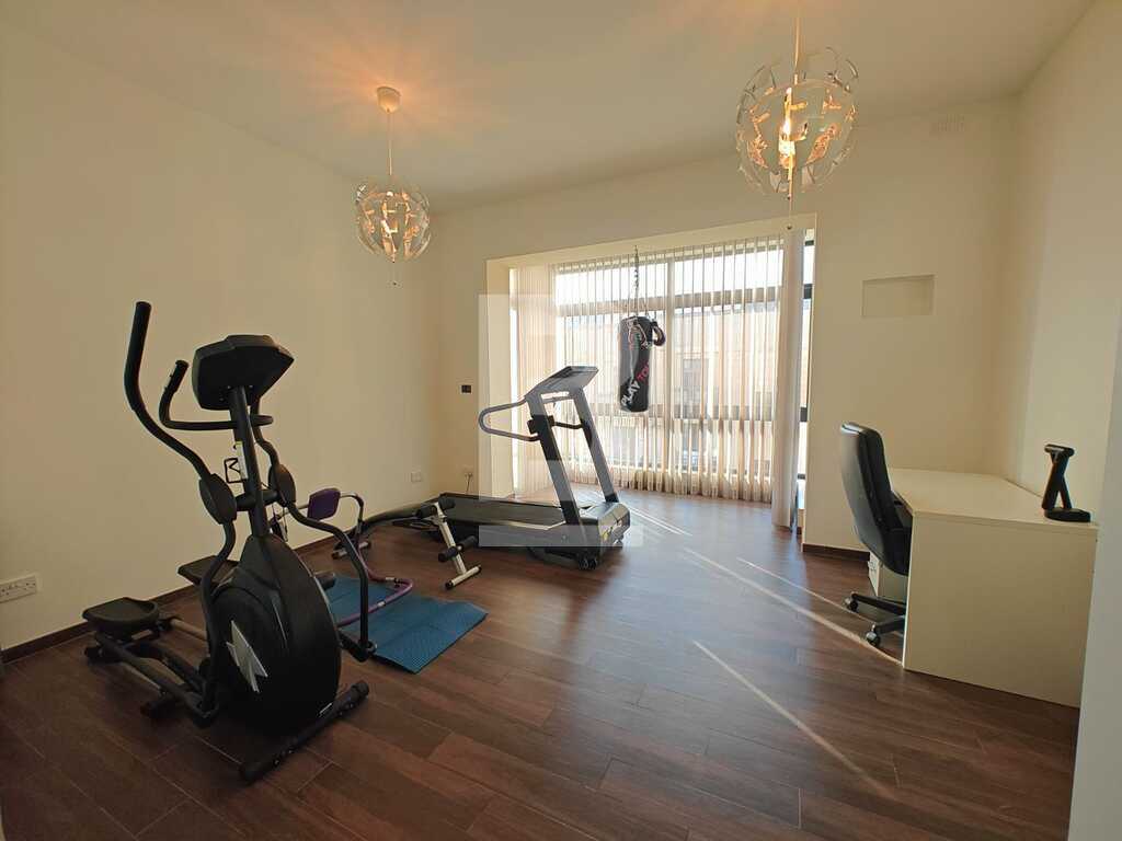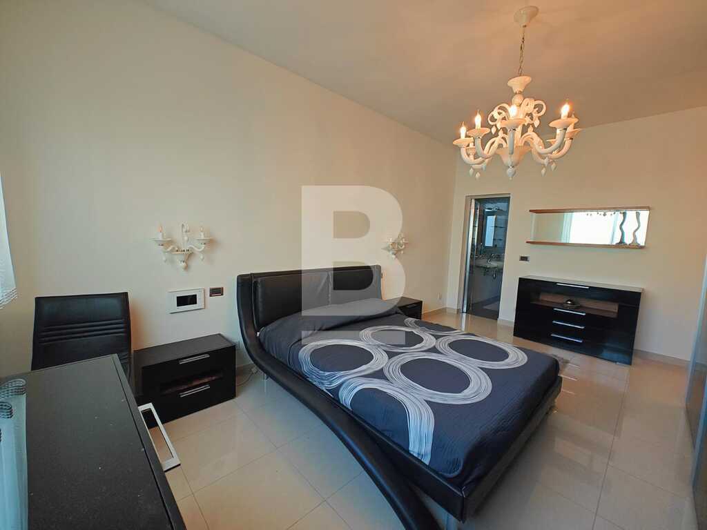 This highly finished duplex maisonette is nestled in a quiet residential area of Marsascala, just minutes away from St. Thomas Bay and close to all essential amenities. The property welcomes you with an elegant entry hall that leads into a spacious open-plan kitchen, living, and dining area, complemented by a front balcony. It features three well-appointed bedrooms, including a master with an en-suite shower room. On the second floor, an additional living area with a fully equipped kitchen opens onto a generous roof terrace, offering distant sea views—perfect for entertaining. This level also includes a gym area, which can be easily converted into a fourth bedroom, along with a dedicated laundry space. Fully air-conditioned and equipped with modern appliances, this home ensures both comfort and convenience. Viewing is highly recommended to fully appreciate its quality and layout.