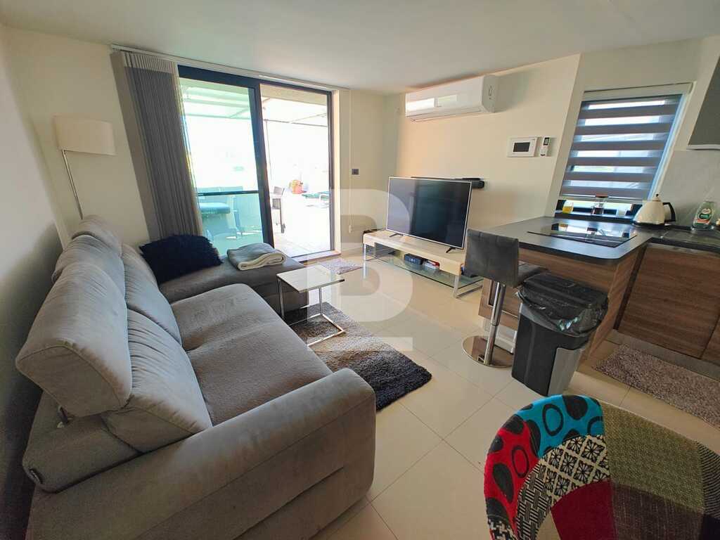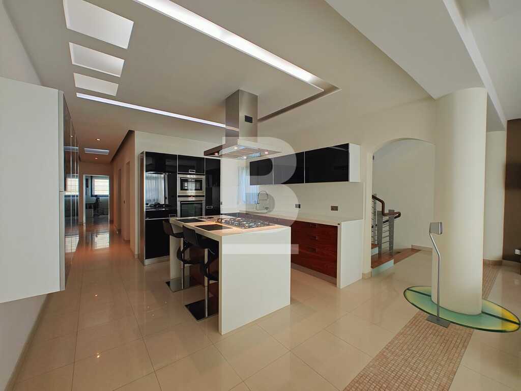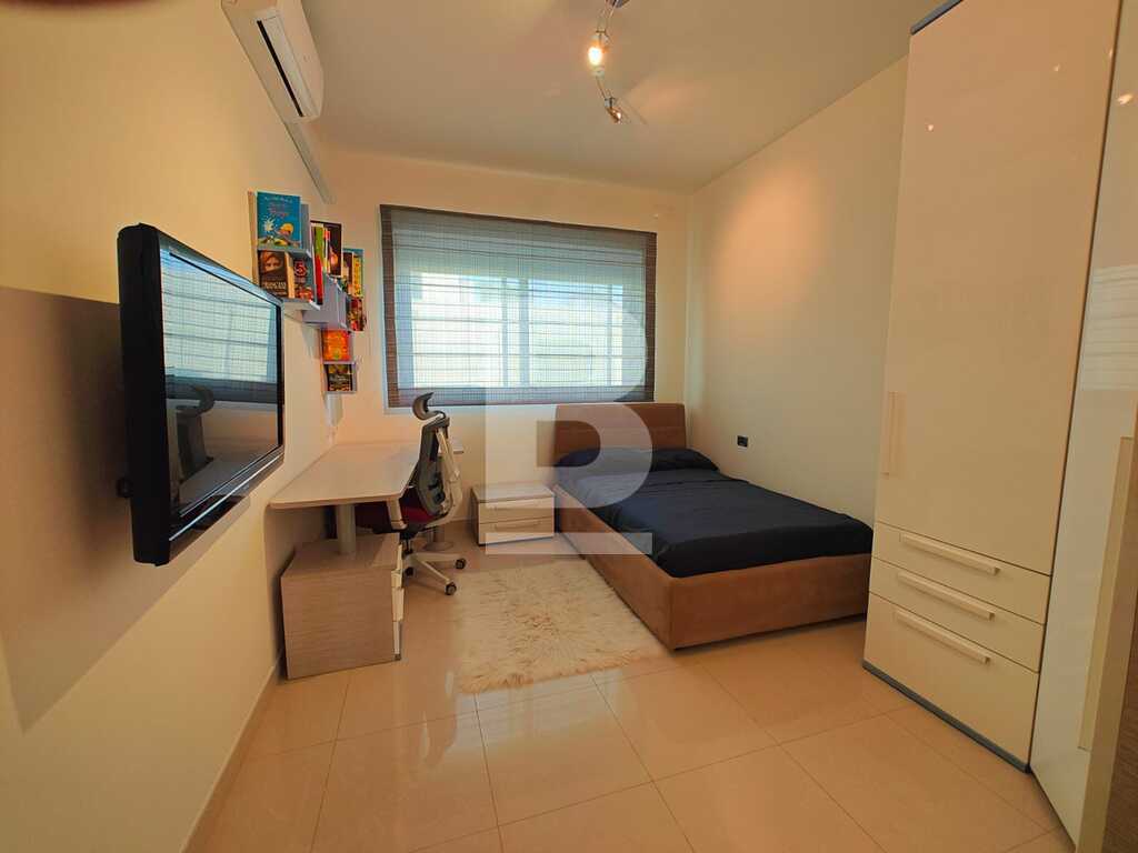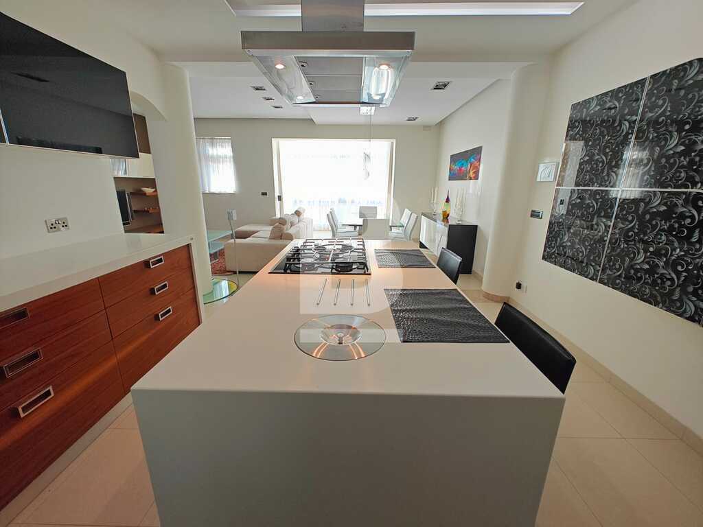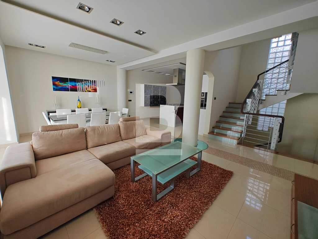 This highly finished duplex maisonette is nestled in a quiet residential area of Marsascala, just minutes away from St. Thomas Bay and close to all essential amenities. The property welcomes you with an elegant entry hall that leads into a spacious open-plan kitchen, living, and dining area, complemented by a front balcony. It features three well-appointed bedrooms, including a master with an en-suite shower room. On the second floor, an additional living area with a fully equipped kitchen opens onto a generous roof terrace, offering distant sea views—perfect for entertaining. This level also includes a gym area, which can be easily converted into a fourth bedroom, along with a dedicated laundry space. Fully air-conditioned and equipped with modern appliances, this home ensures both comfort and convenience. Viewing is highly recommended to fully appreciate its quality and layout.