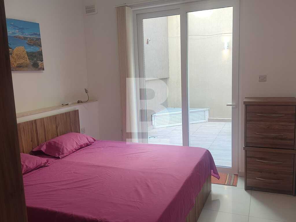 Modern and spacious elevated ground-floor flat in Pembroke, just 300 meters from the sea. This fully furnished and equipped 2-bedroom, 2-bathroom home offers approximately 120 sqm of comfortable living space. The property features a bright open-plan layout, a main bathroom, and a private en-suite. Enjoy a charming backyard, perfect for outdoor relaxation.