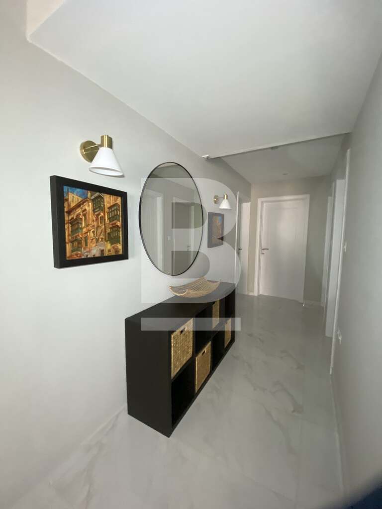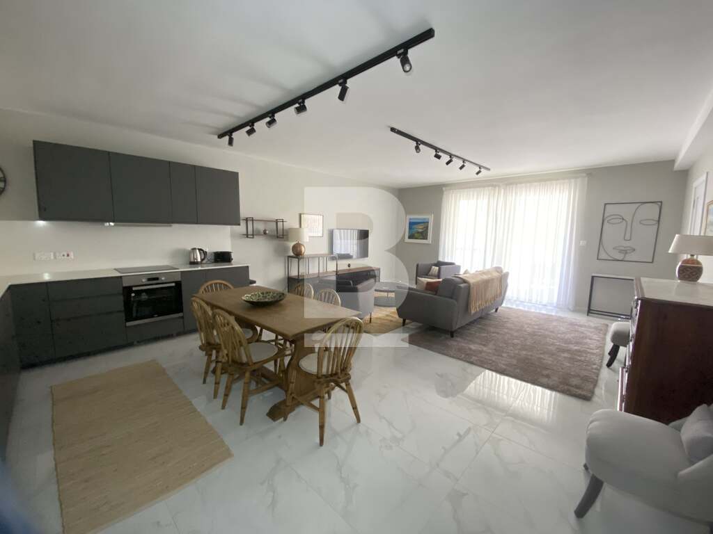 This stunning third-floor apartment is part of a newly built block in the heart of St. Julian’s, offering a bright and airy living space. With a lift, intercom system, and top-quality finishes, this beautifully furnished home consists of three spacious bedrooms, each equipped with independent air-conditioning, the master bedroom also includes its own ensuite bathroom and private terrace, two modern bathrooms, both featuring electric towel rails for extra comfort. The large open-plan living area combines the kitchen, dining, and lounge spaces, all equipped with VRF air conditioning for perfect climate control. The kitchen is fully equipped with a dishwasher, electric hob, oven, microwave, fridge/freezer, and plenty of storage space. Additionally, there is a laundry room fitted with a washing machine for added practicality. Outside, the apartment offers a spacious front terrace with a dining area and a relaxing lounge space, as well as a back terrace that’s ideal for drying clothes. For those in need of parking, an optional garage space is available within the apartment block at an additional cost.