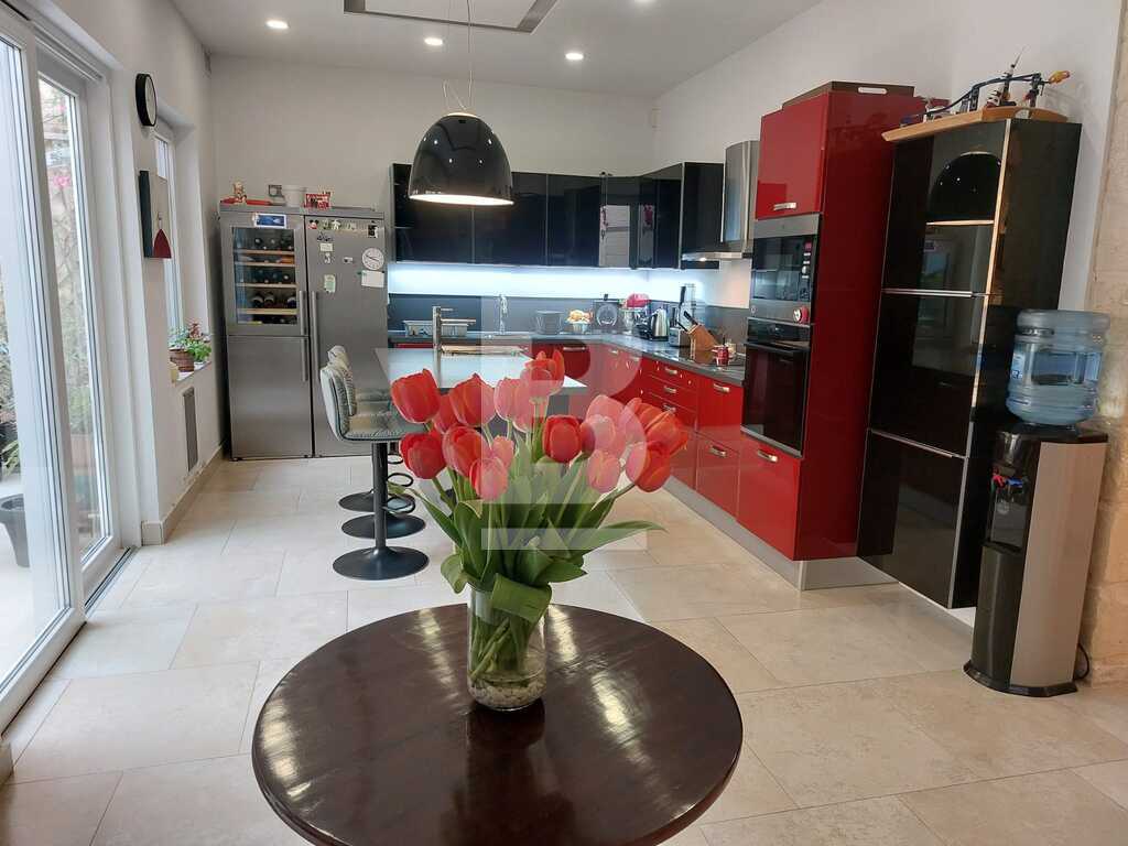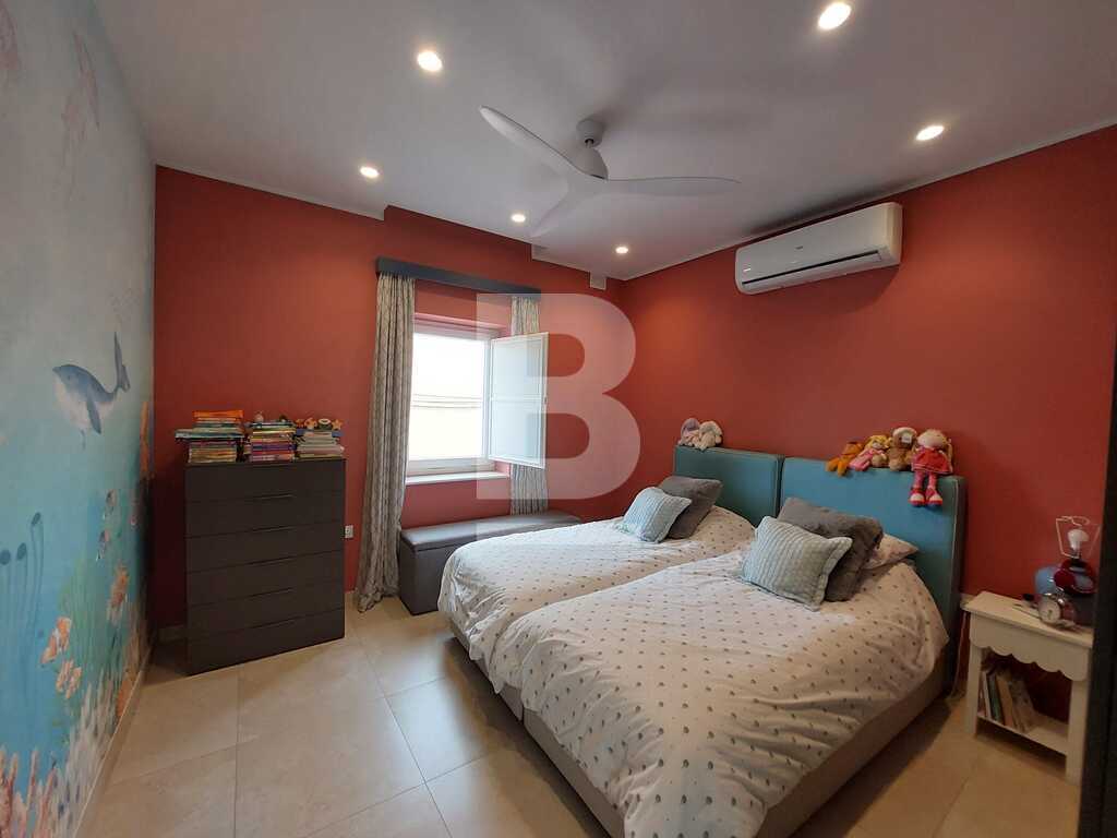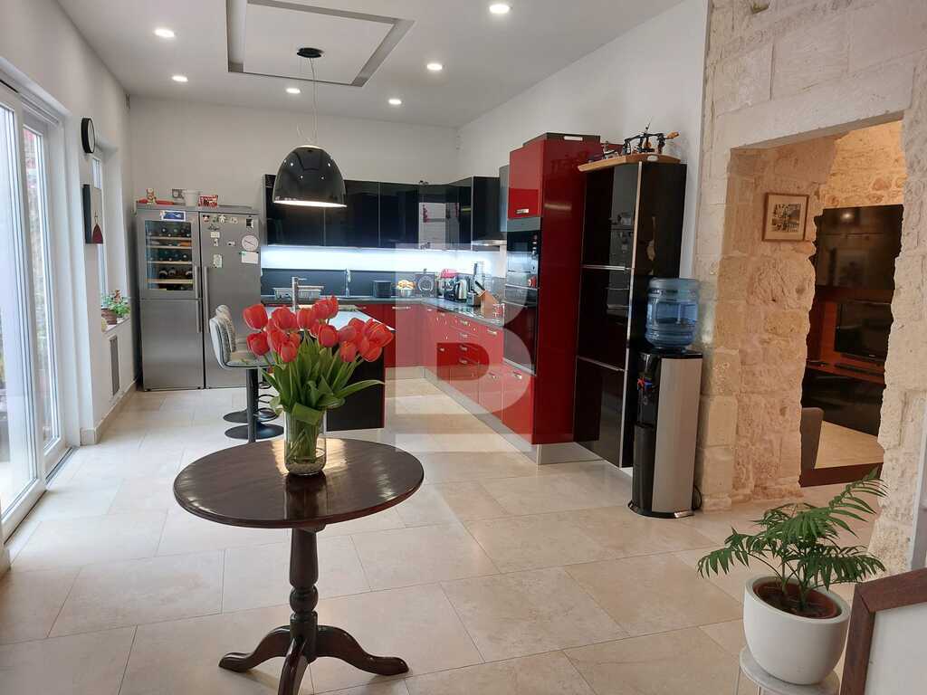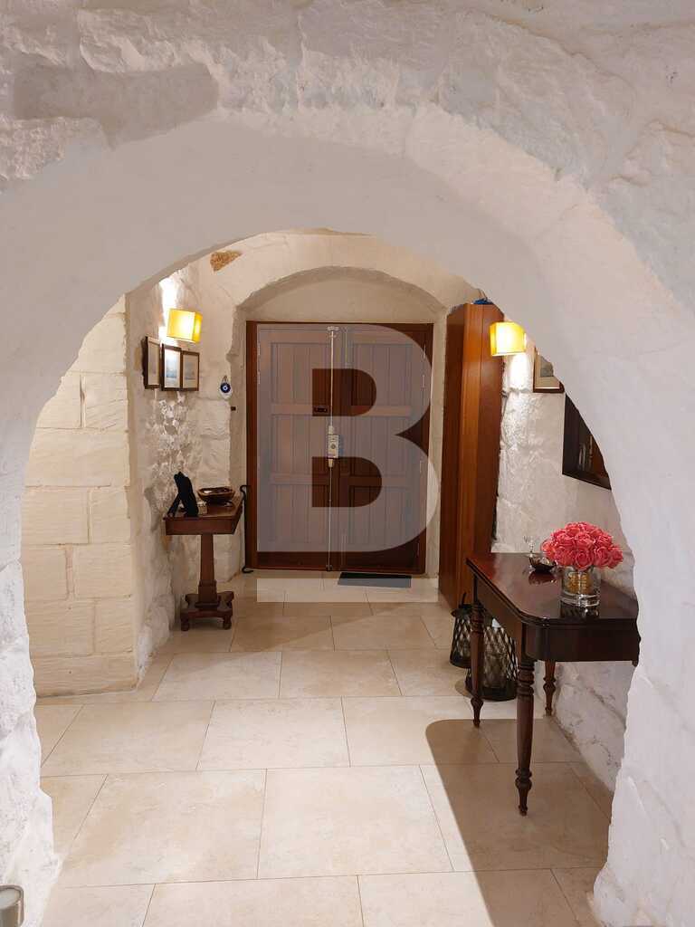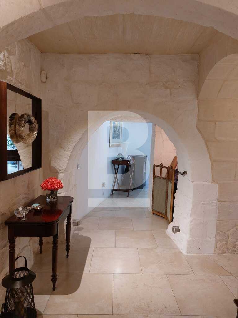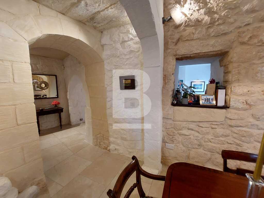 SAN PAWL TAT-TARGA - New to the market - Modernized, impeccably kept, three bedroom House of Character located in this much sought after town. Welcoming entrance hall, retaining all its original features, formal dining room and living room, separate spacious kitchen / breakfast room leading onto a courtyard, guest toilet. Upstairs one finds two double bedrooms, main with a shower en-suite, main bathroom, third bedroom or study. On the top floor level there is a grand washroom that can easily be converted into an extra kitchenette leading onto the roof terrace/garden for summer entertaining,. The house is full of natural light due to its large glass apertures. Freehold. .