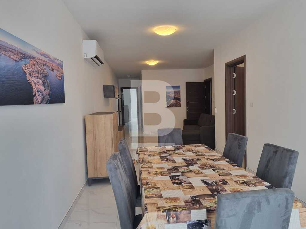 A strategically located, brand-new 2-bedroom apartment in the highly sought-after area of Naxxar. This bright and airy home is flooded with natural light and tastefully furnished with a modern touch. Upon entering, you are greeted by a spacious open-plan living, kitchen, and dining area that leads onto a generous front balcony. The sleeping quarters consist of two double bedrooms and two bathrooms. This exceptional property is being offered fully furnished and fully equipped, providing everything you need for comfortable living
