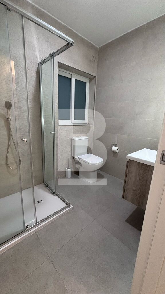 The primary bedroom boasts an en-suite shower room and a private back balcony. The second double bedroom is well-sized and filled with natural light. The property also includes a bathroom with a shower. Fully air-conditioned throughout for maximum comfort.